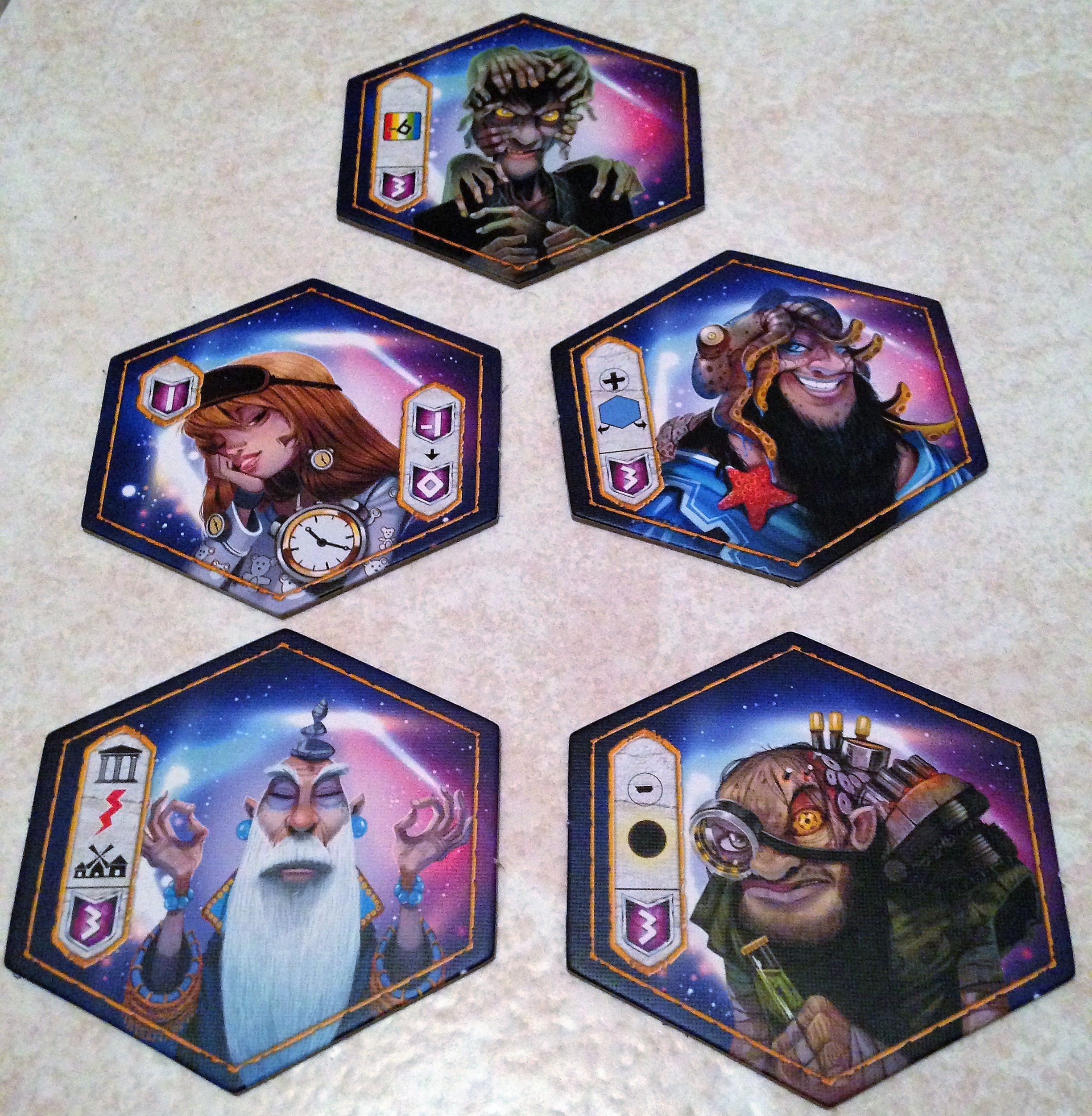 Ne vous fiez pas à son apparente simplicité, Orbis vous offre une expérience stratégique et casse-tête très appréciable! En essayant de valider les conditions de pose des tuiles pour débloquer les bonus de PV plusieurs scénario se profileront dans votre cerveau et vous essaieraient d’avoir plusieurs coups d’avance. Si je pose telle couleur maintenant, je ne pourrai plus poser cette tuile par la suite etc…