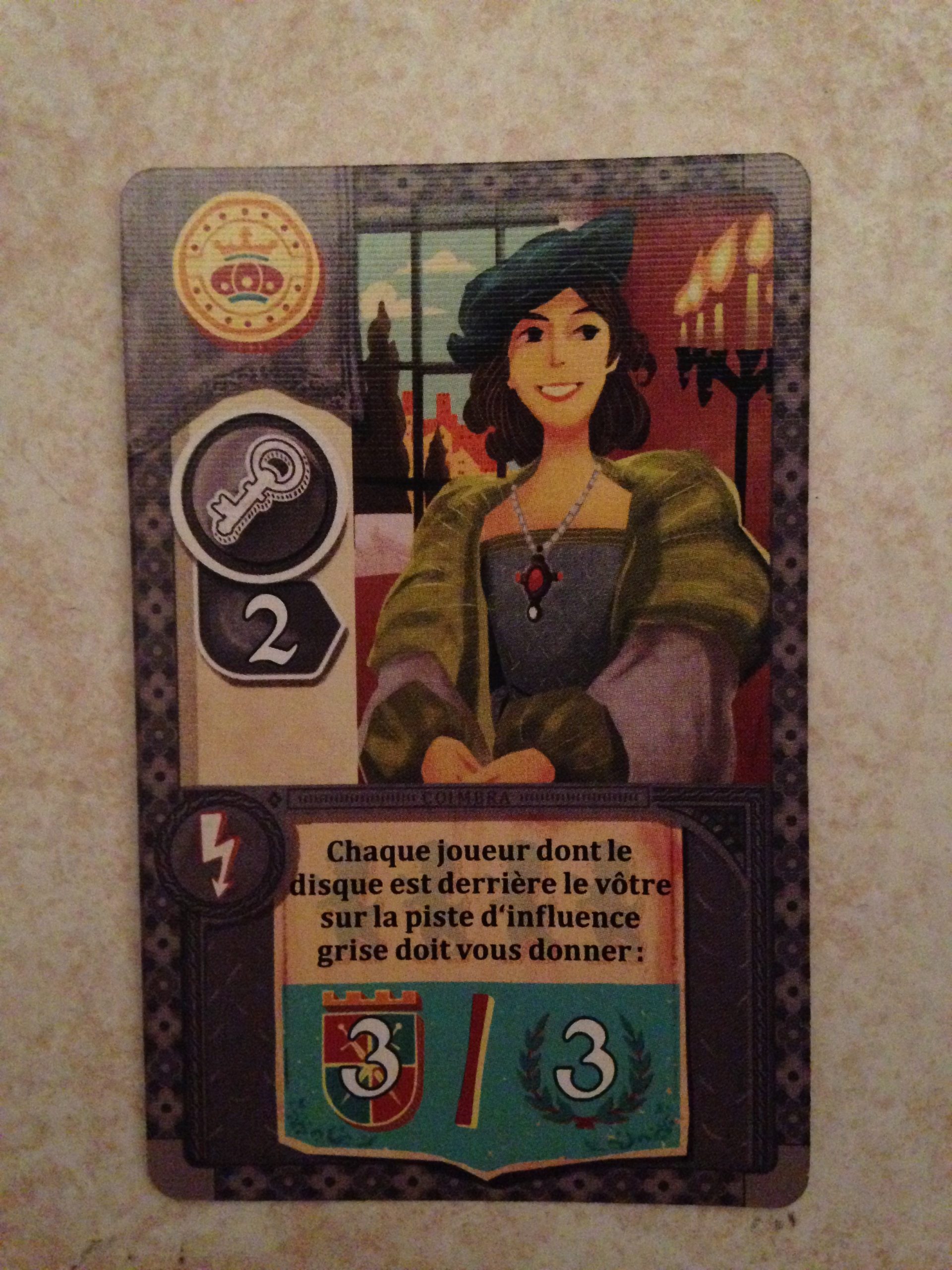 Si ça ne vous paraît pas très clair, c’est normal. De une je ne suis pas certain d’avoir été super clair dans mes explications, et de 2 le jeu est assez compliqué à prendre en main. 1 dé à une valeur qui permet de fixer l’ordre de résolution des parties de la ville, sa couleur correspond à la piste d’influence du plateau central que l’on pourra donc augmenter, et sa valeur définit aussi le coût de la carte que je souhaite acheter!
