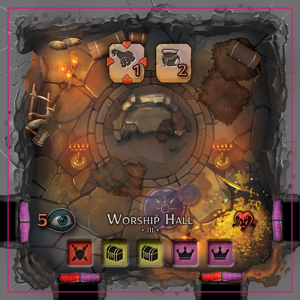 - Exploration d’un donjon qui se révèle au fur et à mesure que l’on ajoute des tuiles.