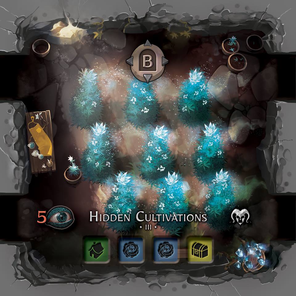 - Jouer une action principale d’une carte ruse. Les cartes ruse sont de différents types (subterfuges pour réussir les tests de furtivité et voler des cubes aux adversaires, sociales pour obtenir l’aide des autres savants ou les convaincre de vous donner des cubes, destin pour obtenir un bonus de furtivité, exploration pour faciliter les mouvements et poser des pièges, magie pour lancer des sorts, notoriété pour agir sur les actions des adversaires) et génèrent un bonus de furtivité, une action principale et des actions complémentaires.