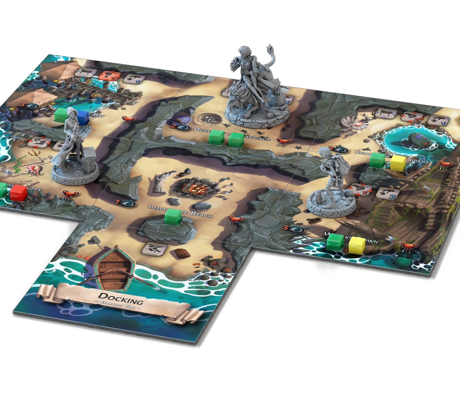 - Une condition de victoire hasardeuse avec des bonus ou malus qui se déclenchent uniquement lorsque le joueur qui tente de finir la partie jette un œil aux conditions de fin. On a possibilité de regarder la carte pendant la partie pour anticiper, mais il faut débloquer l’action.