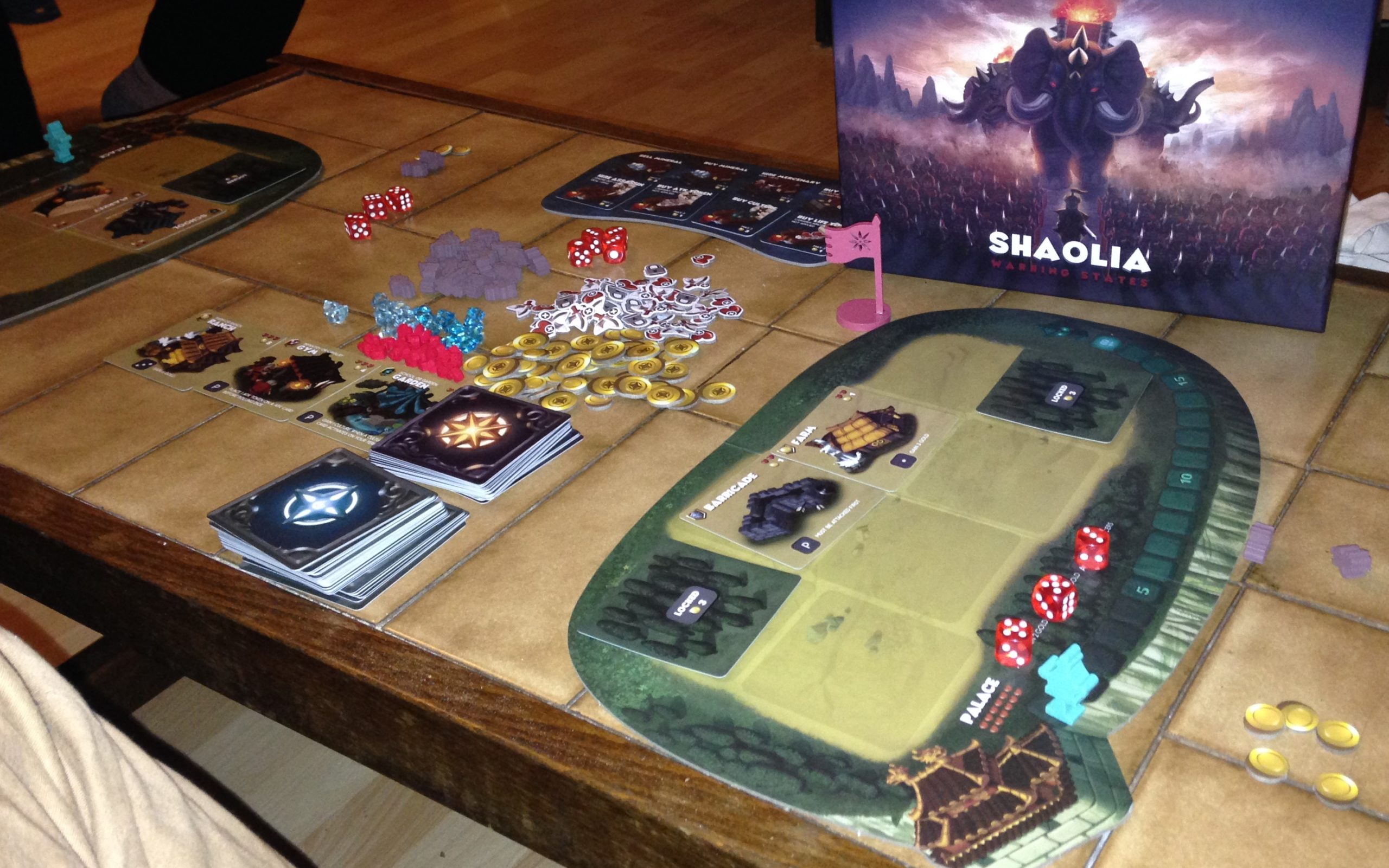 Avec ses dessins à la Settlers, à la sauce orientale, Shaolia présente un univers homogène, bien réalisé et immersif. Le matériel testé est de très très bonne qualité (encore une fois il ne s’agit « que » d’un prototype), et on prend plaisir à manipuler les éléments, ressources, et cartes.