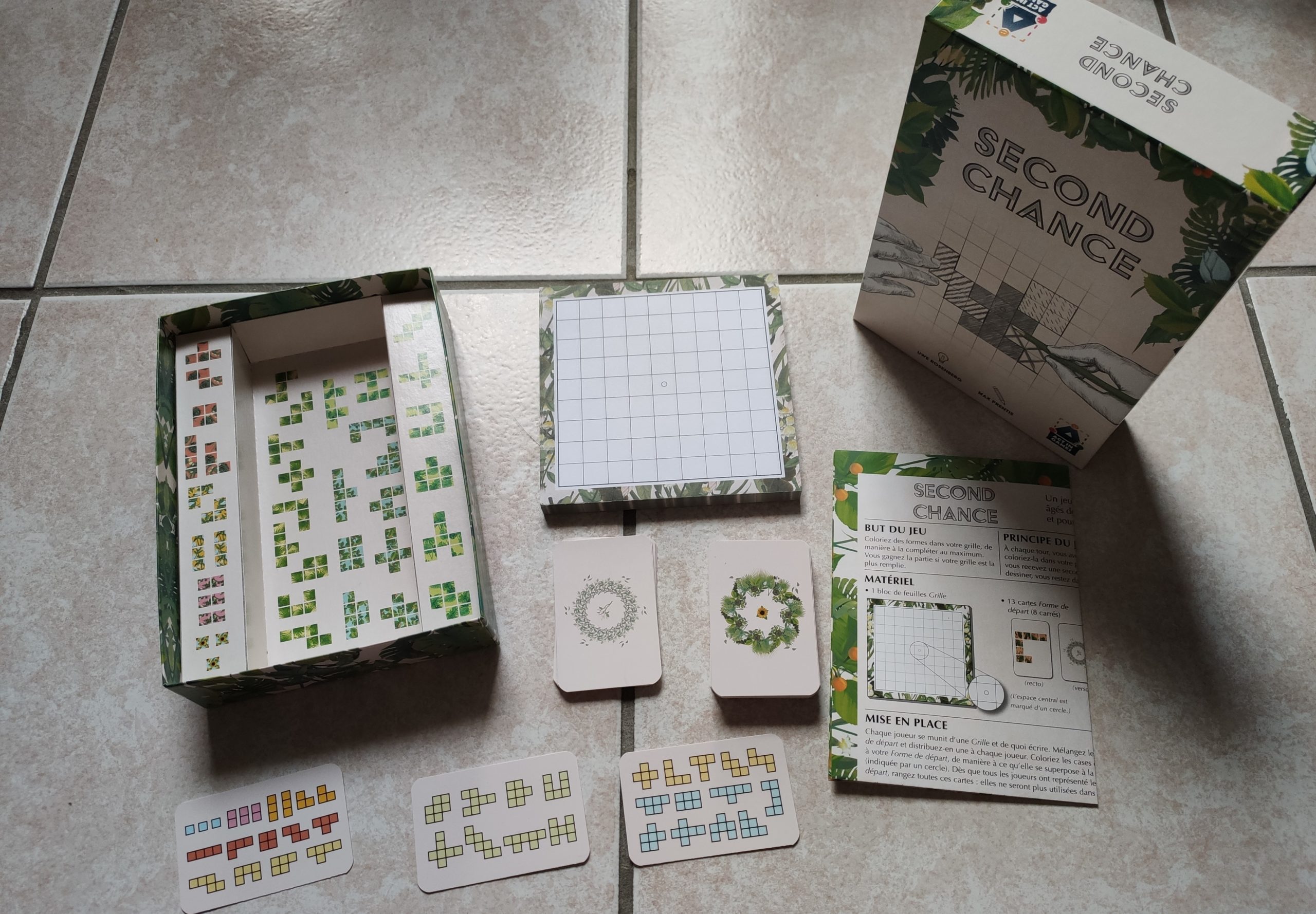 Dans Second Chance, vous allez colorier des formes dans votre grille quadrillée, de manière à la compléter au maximum. Vous gagnez la partie si votre grille est la plus remplie.