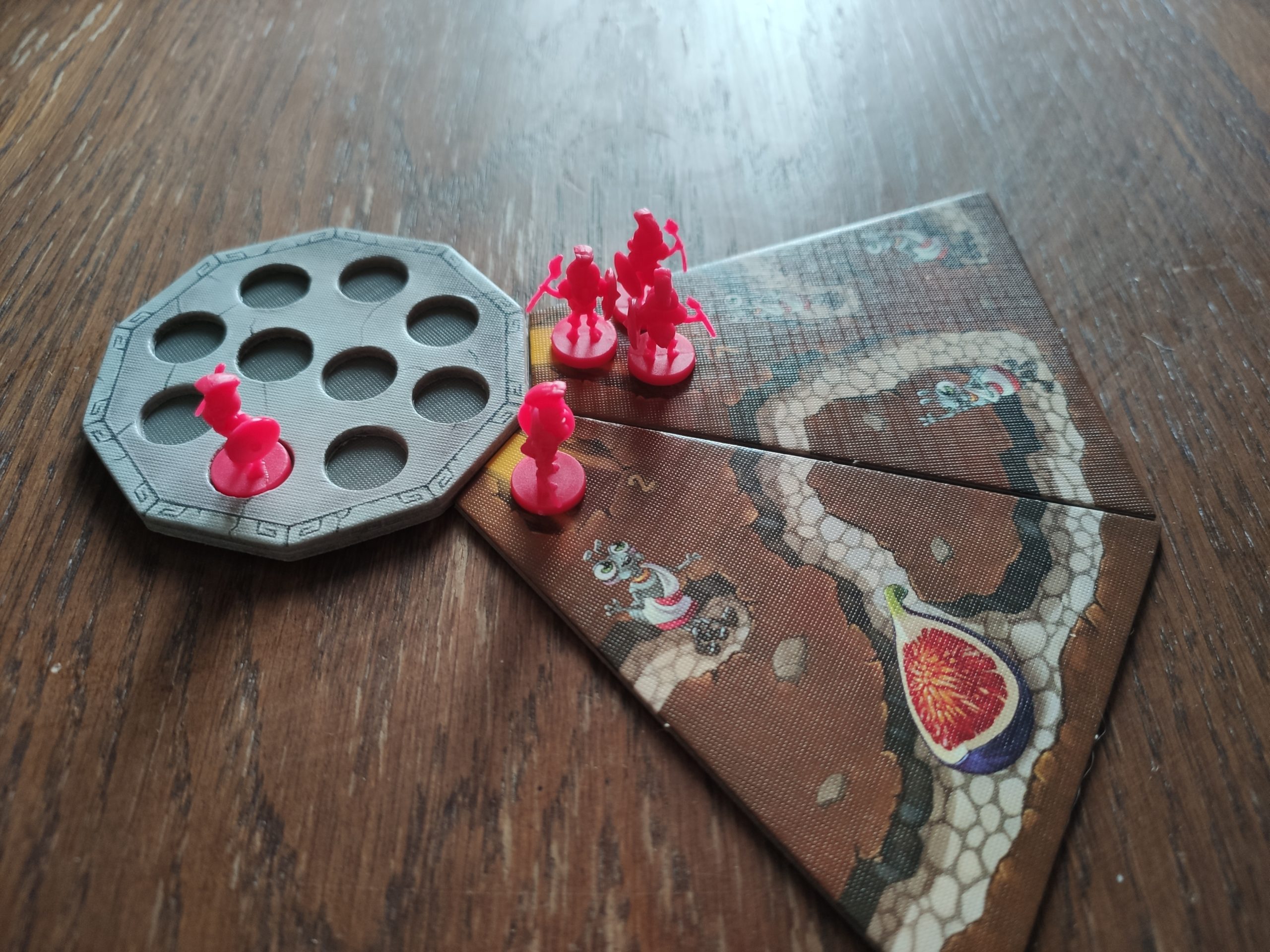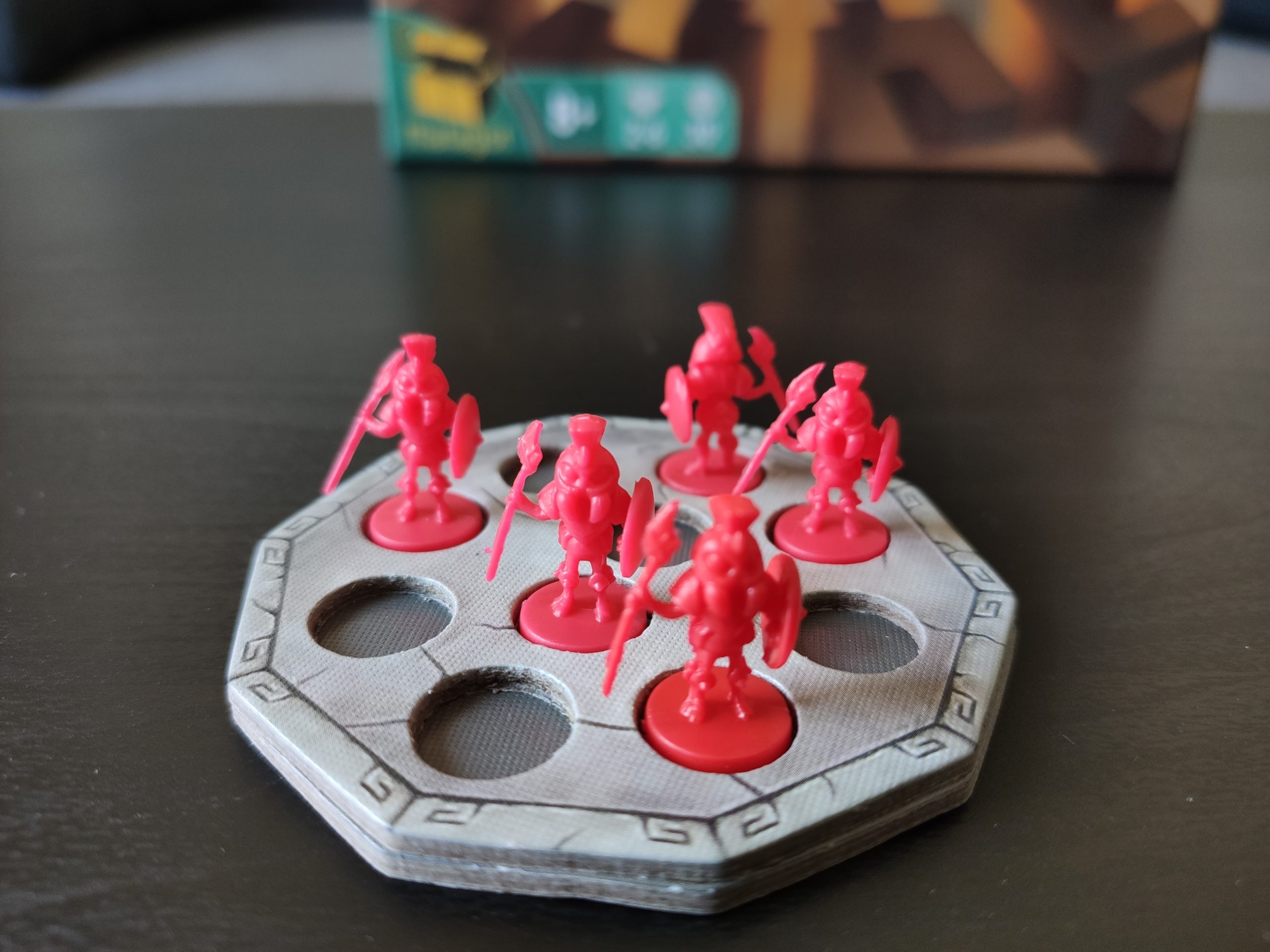 Sur la tuile fondation de départ de chaque joueur figurent aussi 5 soldats fourmis qui constituent l’armée de départ.