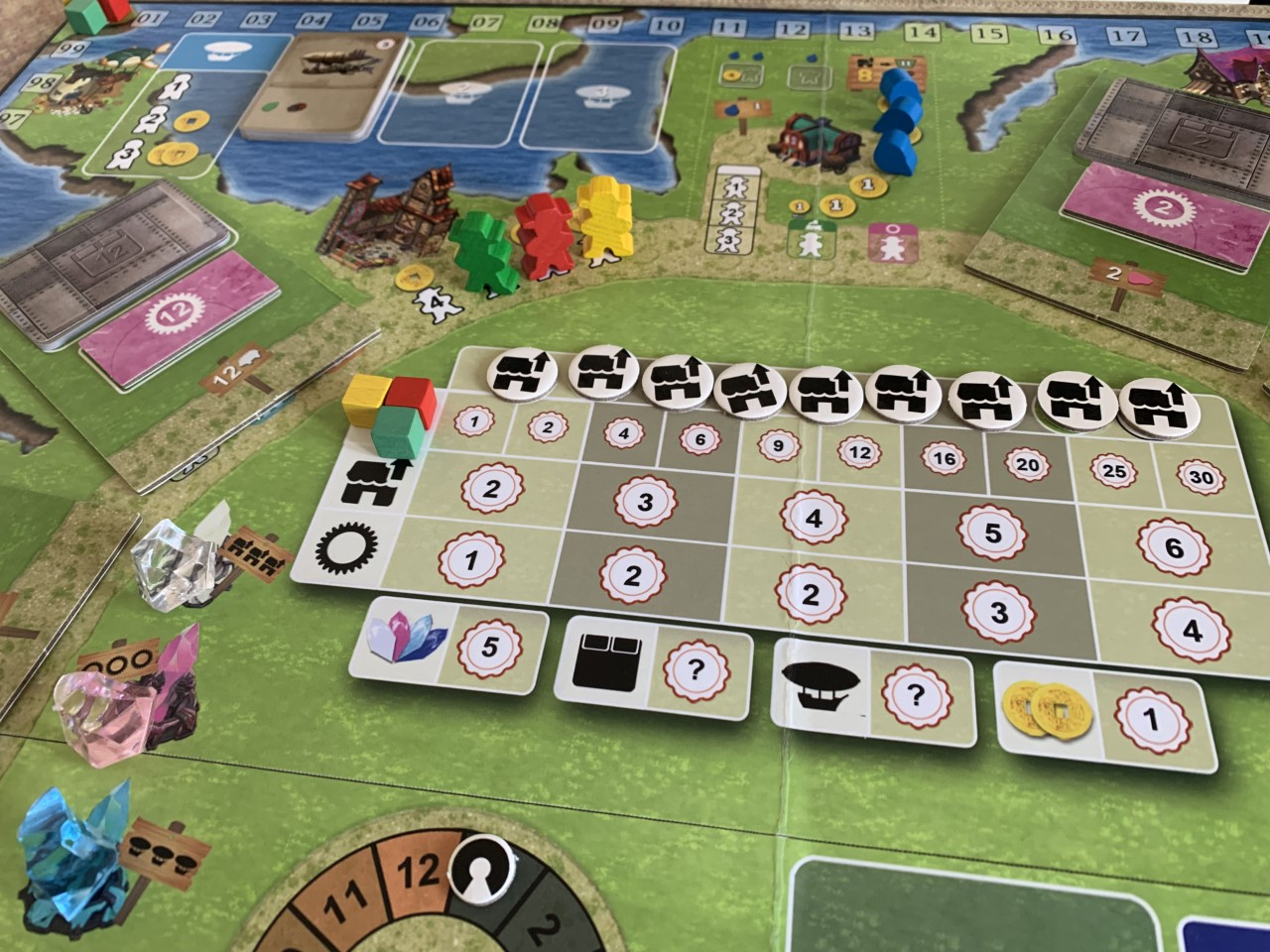 En améliorant les bâtiments vous allez débloquer des paliers de scoring final ou les différents éléments du jeu vous rapporteront de plus en plus de points.