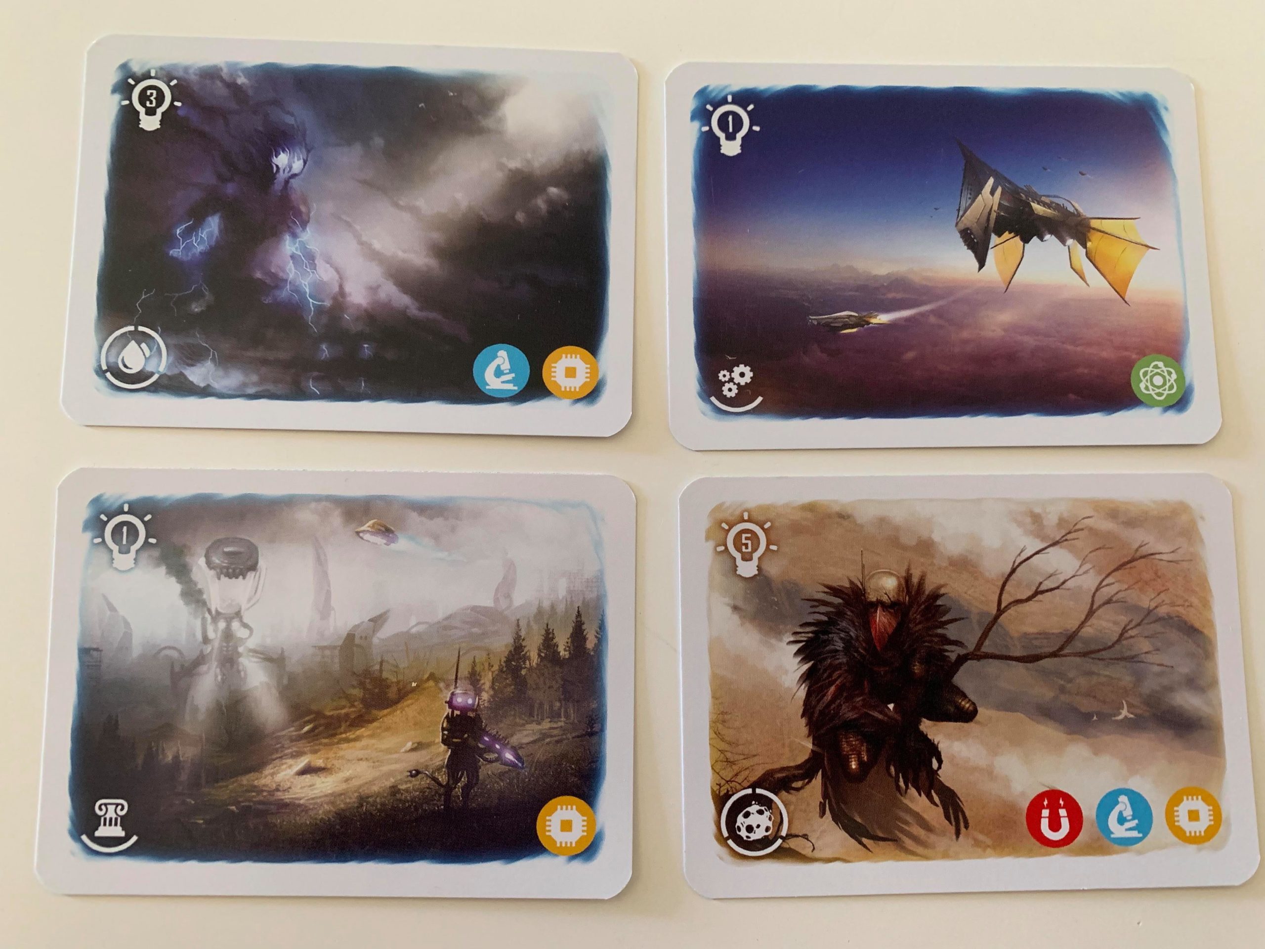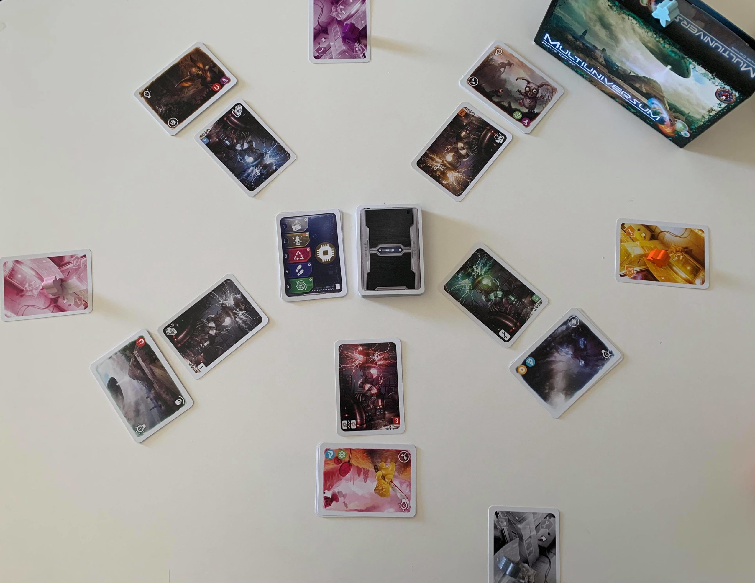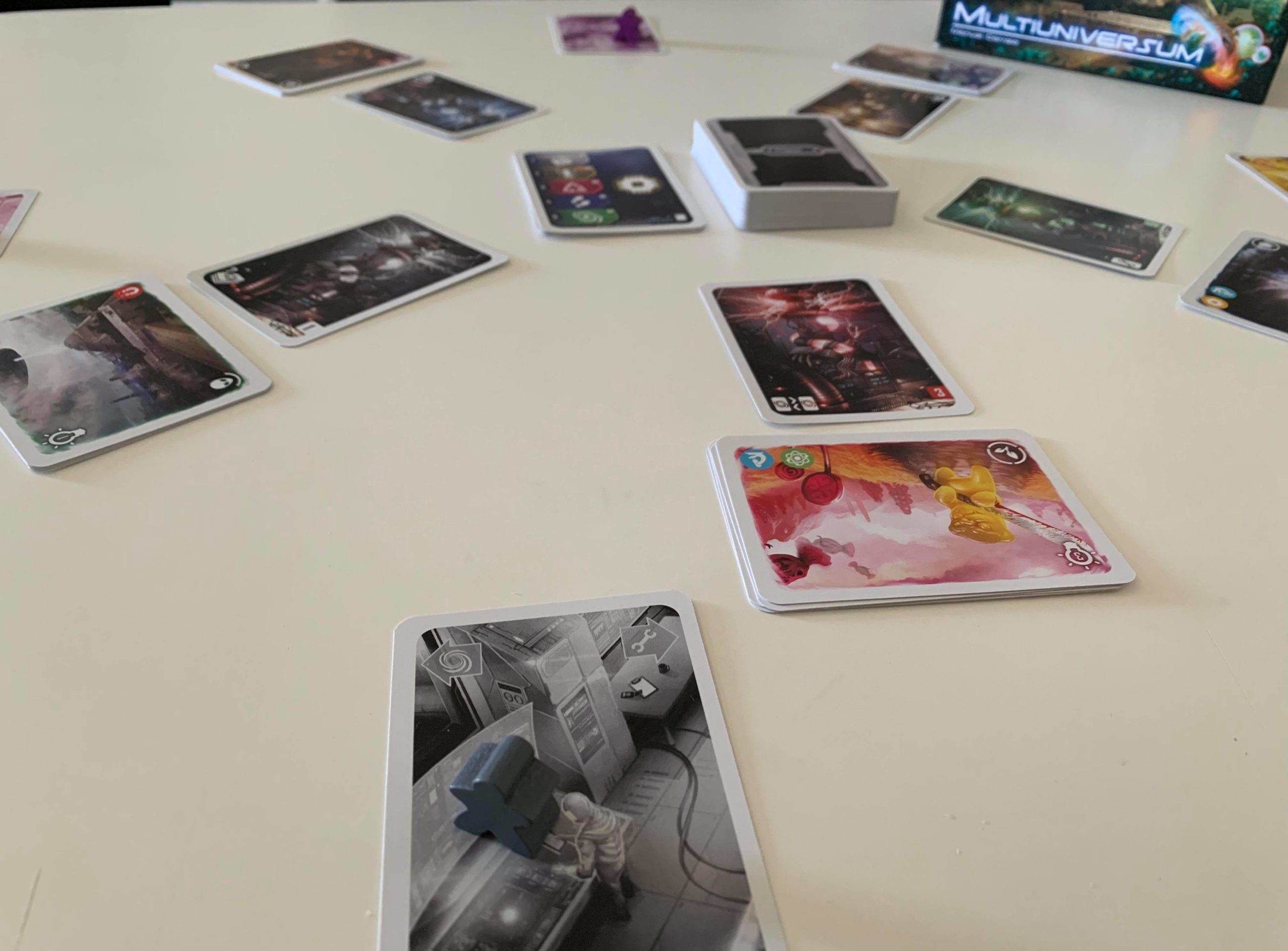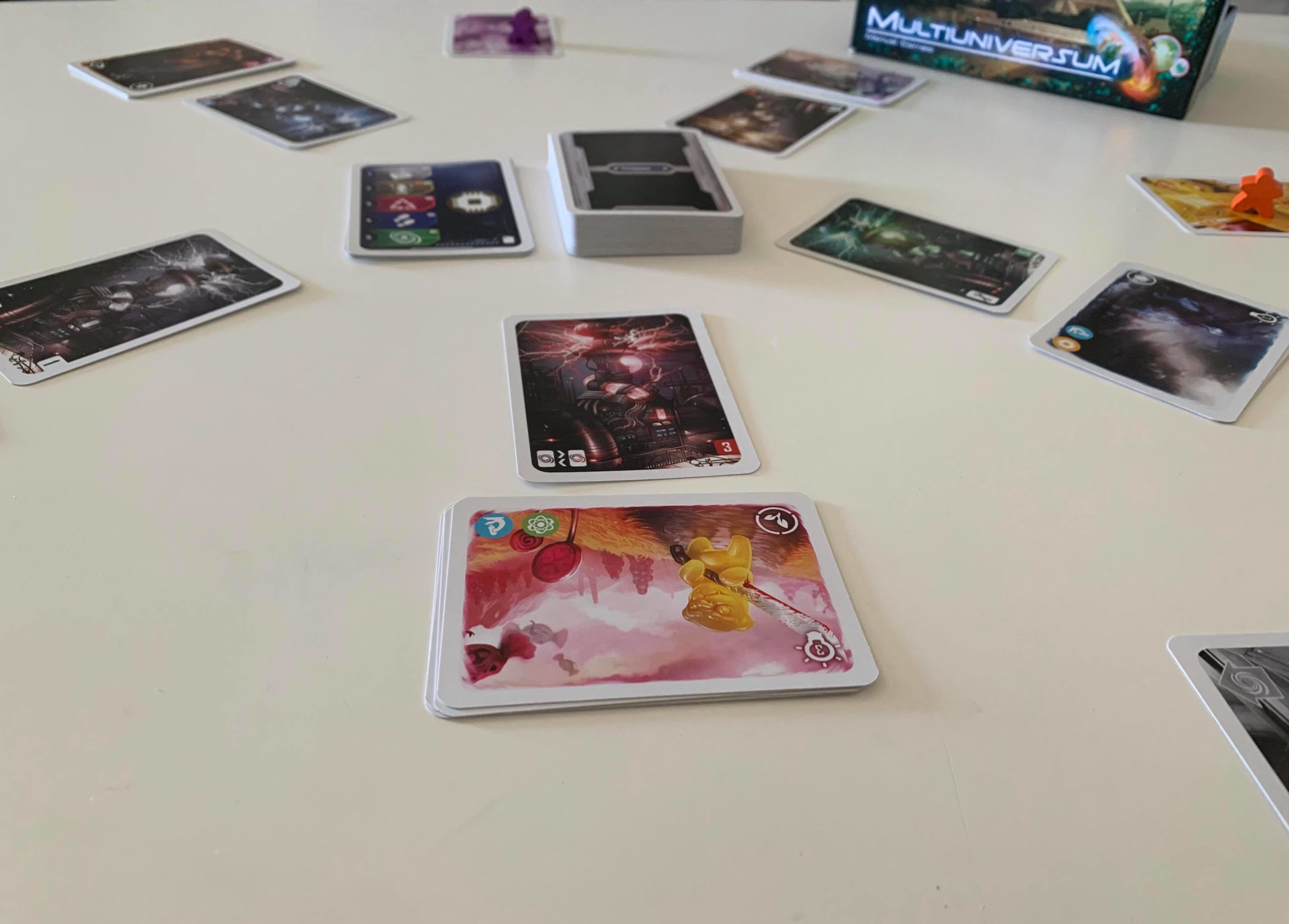 Multiuniversum est un petit jeu par sa taille, malin et facile à sortir! Un bon filler pour joueurs n’ayant pas peur du hasard de la sortie des cartes.