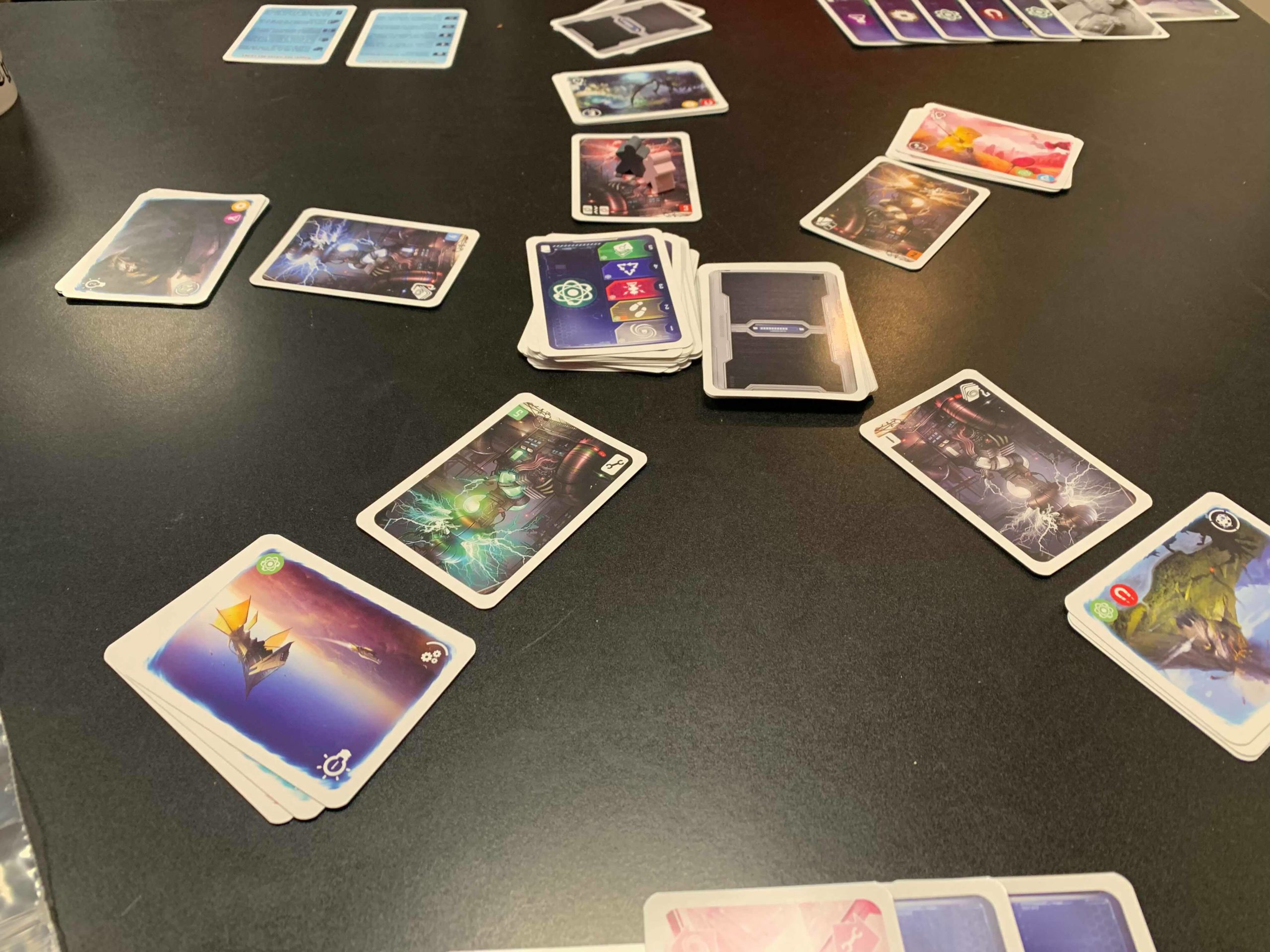 En solo le jeu devient nerveux et rapide. L’IA va récupérer 2 cartes par tour et si elle valide un portail ou elle se trouve elle le scelle et passe au transformateur suivant.