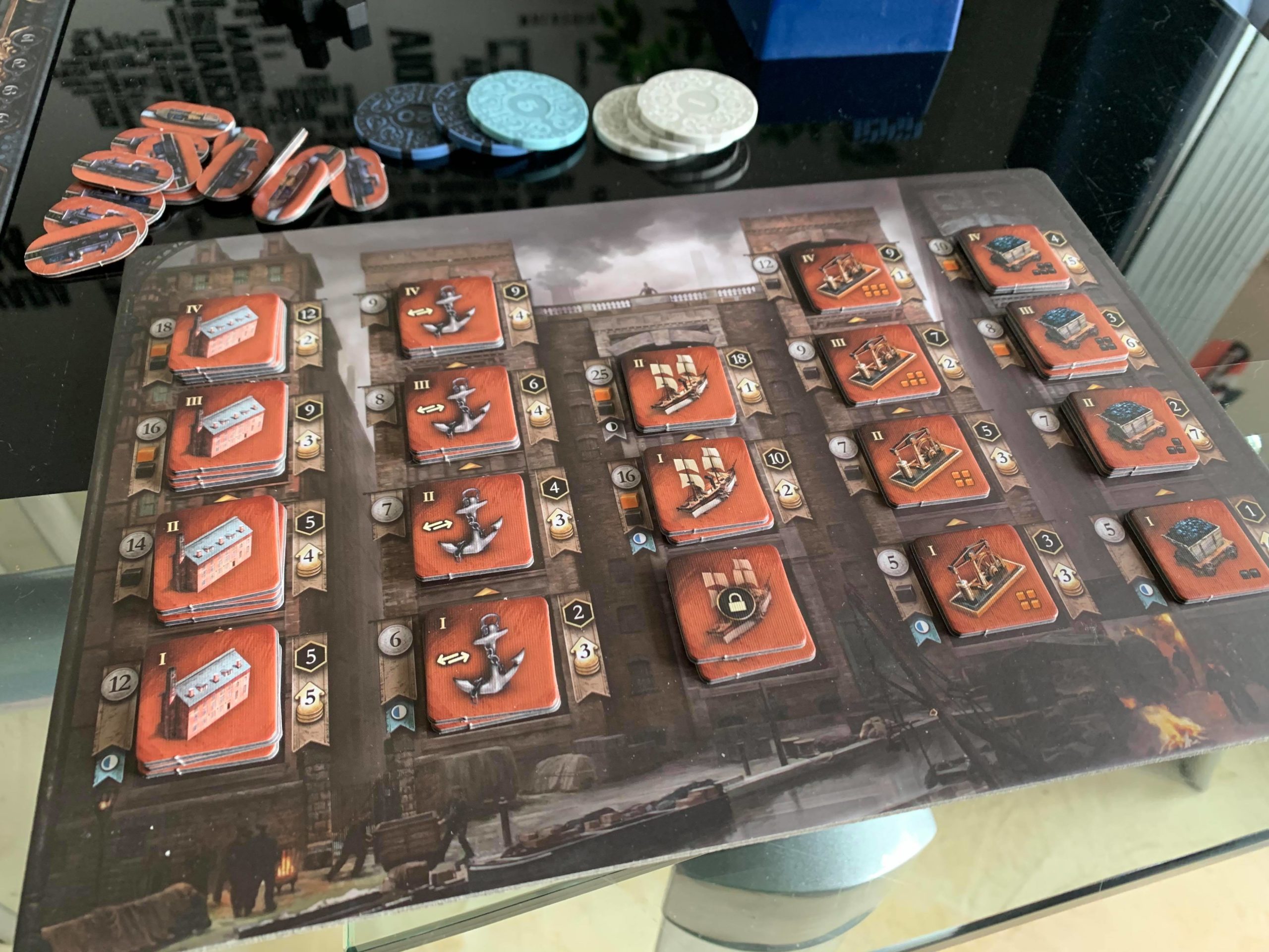 Parce que le marché commun peut absorber des ventes d’usines mais pas toutes! À chaque vente vous retournez une tuile marché commun ce qui fait descendre le marqueur d’autant de cases et s’il arrive en bas… la vente est annulée! Alors il vaut mieux utiliser le port d’un concurrent que de prendre le risque de louper sa vente.