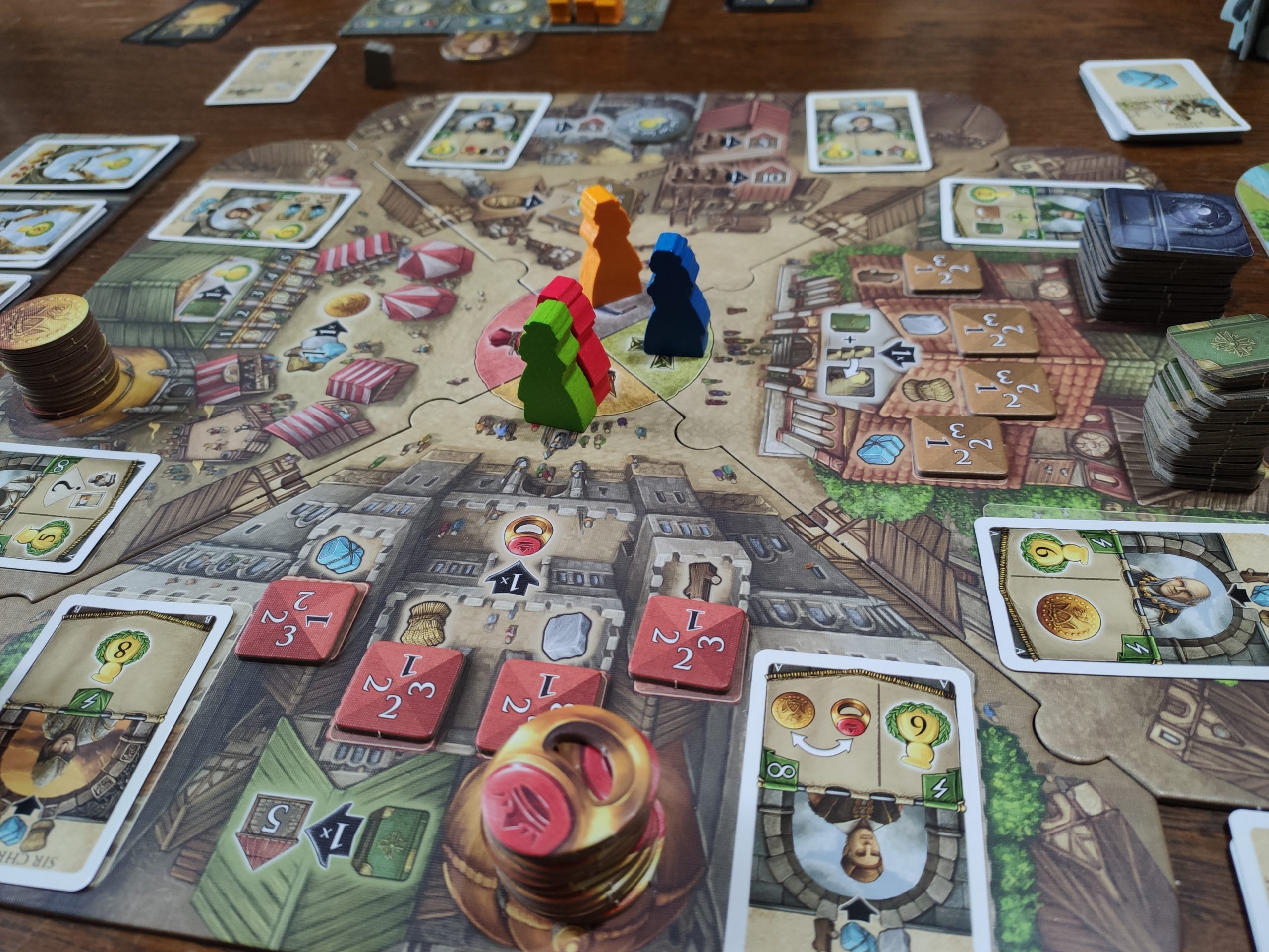 Comme un bon jeu expert qui se respecte, il n’y a pas 1 mais plusieurs stratégies payantes. Comme vous avez pu le lire, il y a 8 lieux différents, 4 ressources basiques, mais aussi de nombreux éléments que l’on peut convertir à un moment ou un autre en points de citoyens et de bâtiments (les chevalières, les pièces d’or, les livres, les faveurs, le pain).