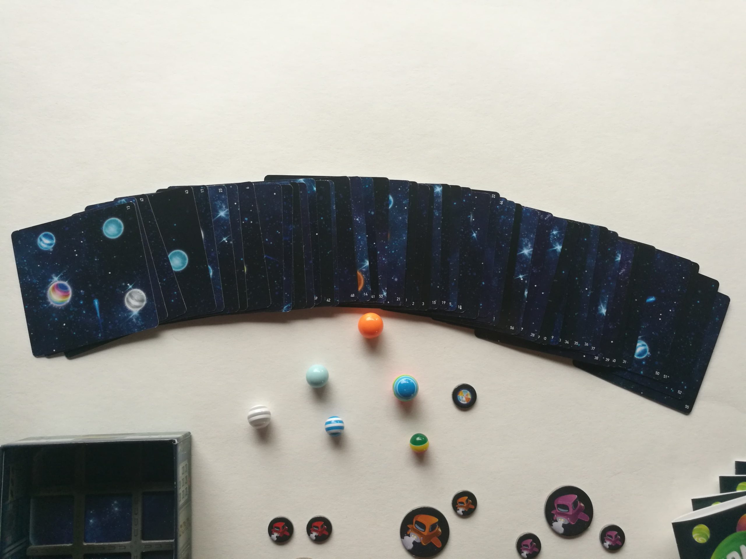 Et en plus la rejouabilité est infinie puisqu’il y a 56 cartes constellation, qu’on n’en utilise que 35 par partie et que les jets des planètes et jetons destination ou trou noirs ne sont jamais les mêmes !