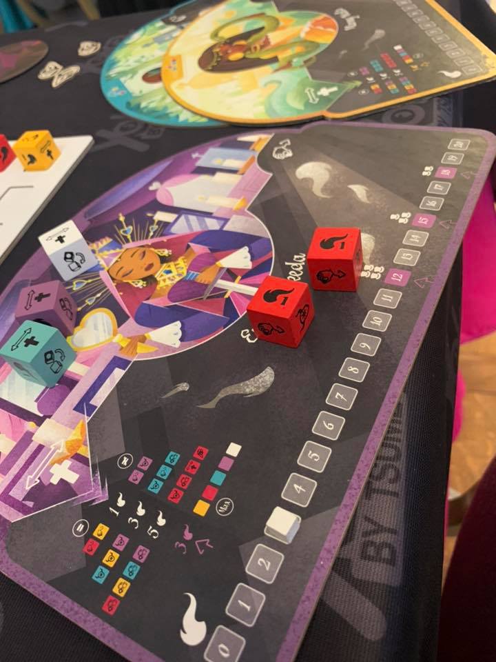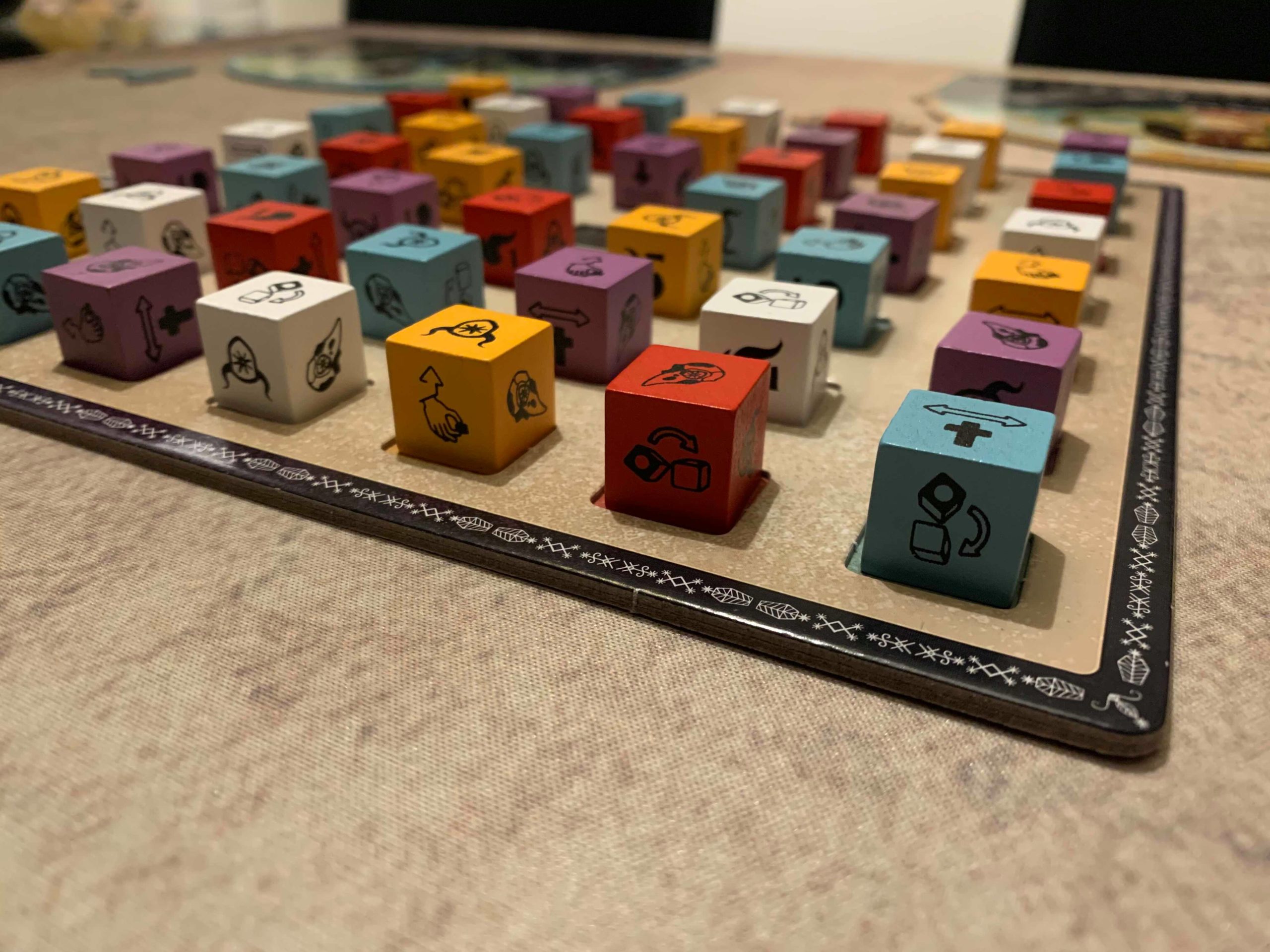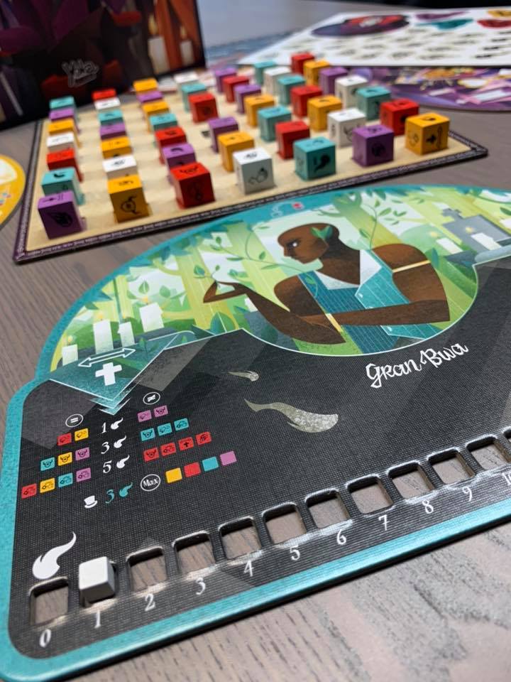 Les dés blancs sont des dés joker. Le joueur qui en a le plus dans sa zone des esprits récupère l’icône de baron voodoo qui désactive le pouvoir de son Loa et lui permet d’utiliser le pouvoir des autres Loa gratuitement.
