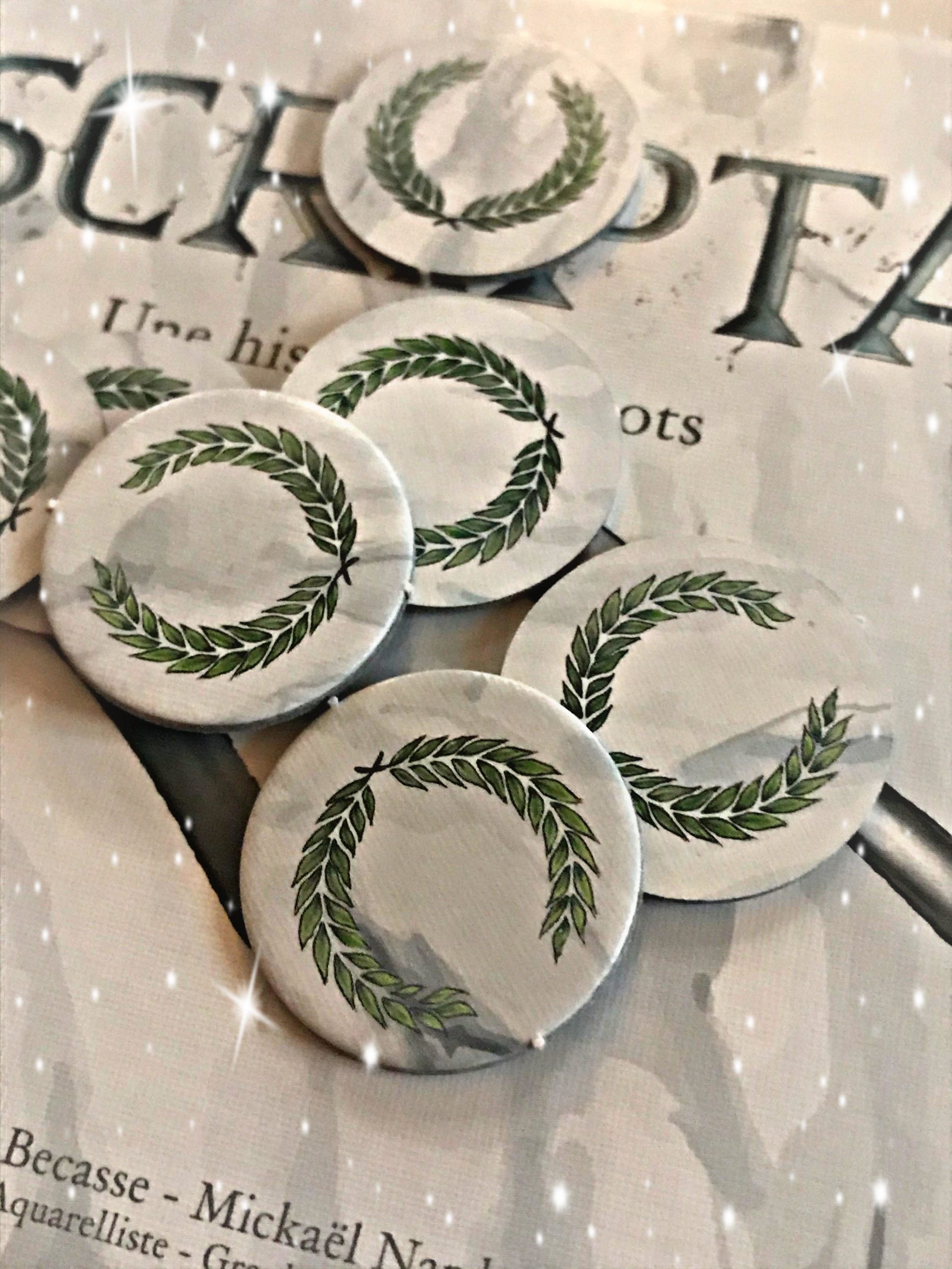 Les jetons Scripta – ce sont nos fameux points de victoire – sont au nombre de 14 et sont symbolisés par une belle couronne de laurier.
