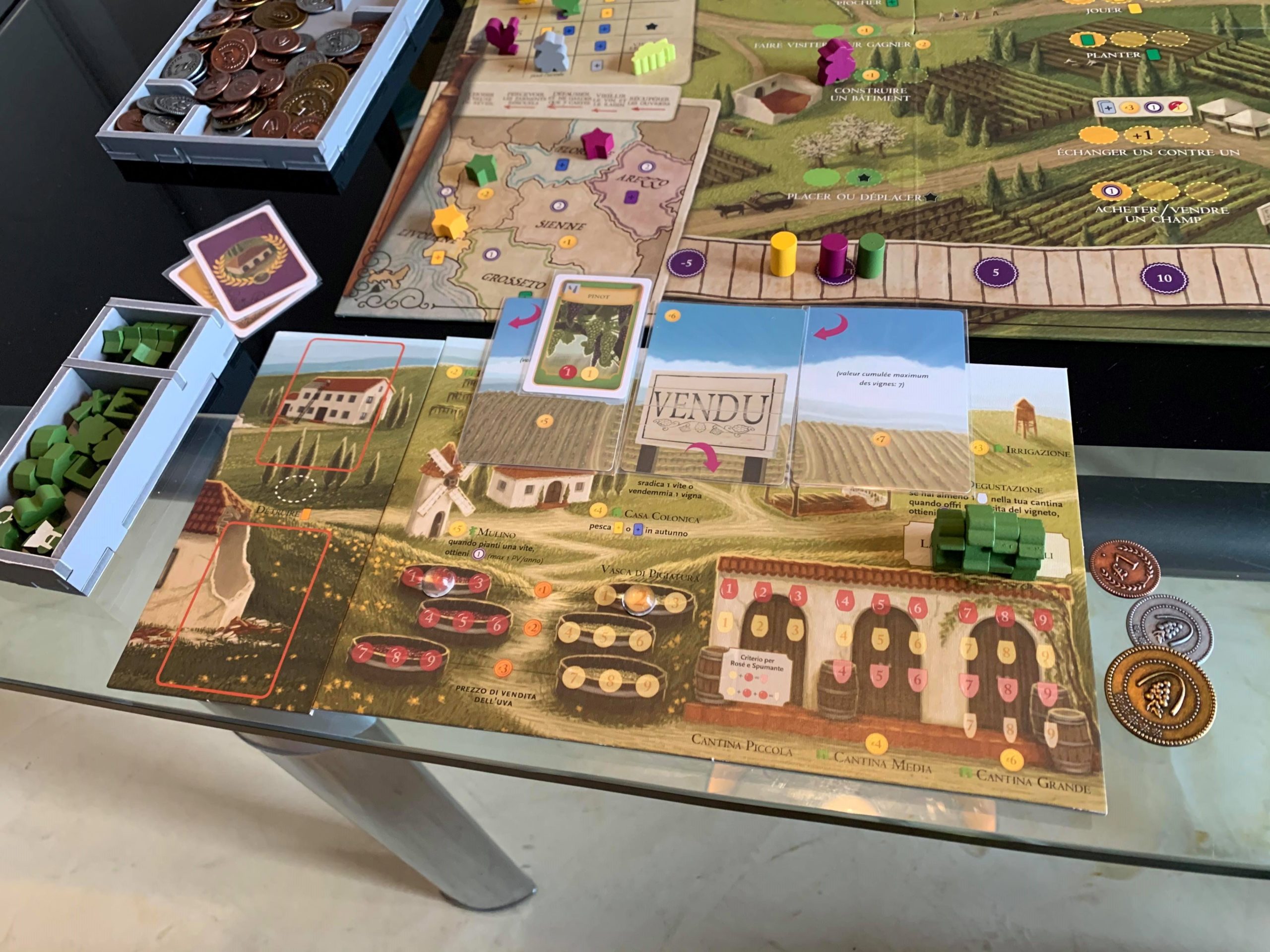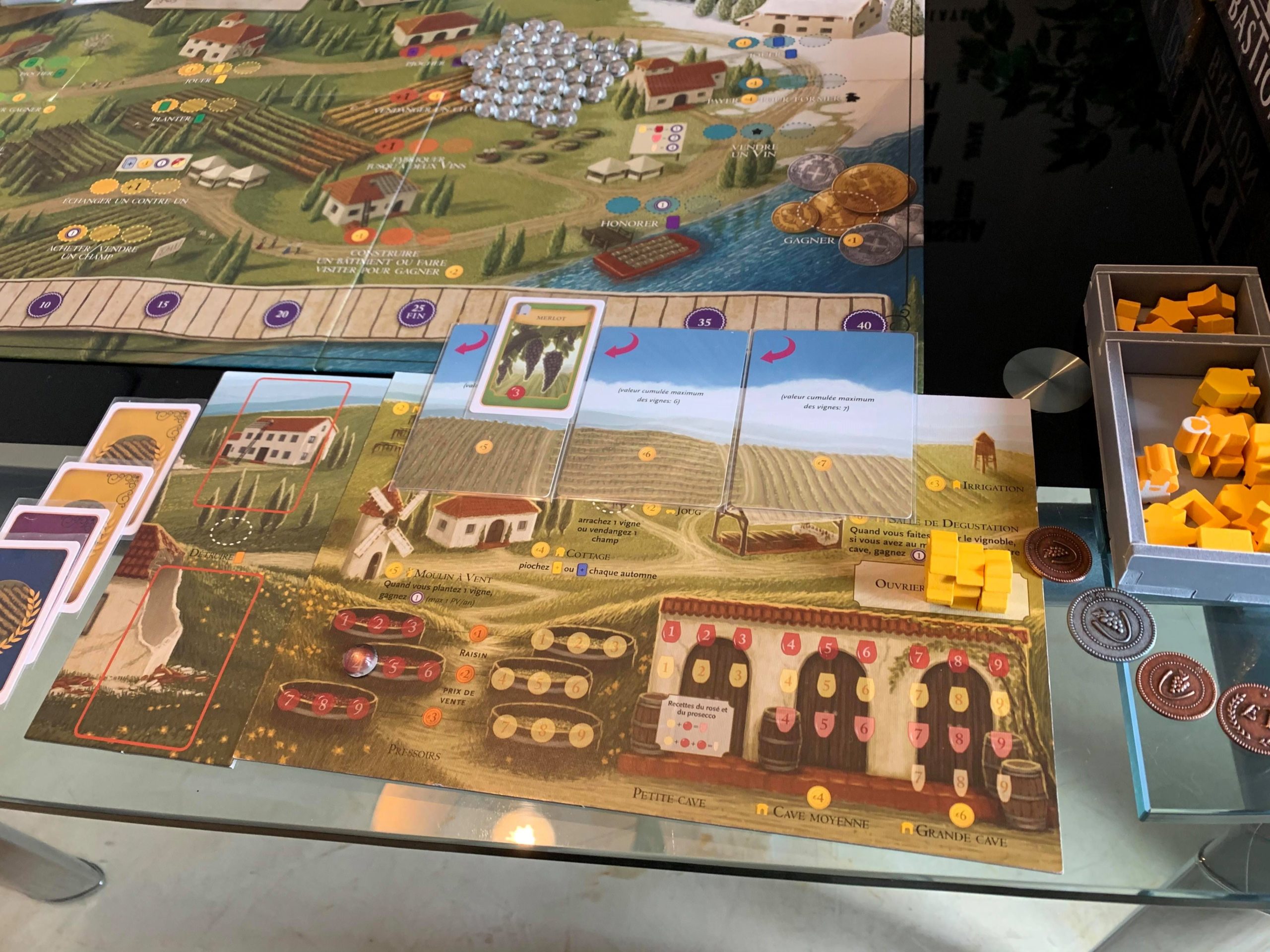 Tout au long des différentes manches, il vous faudra donc combiner la pose de vos ouvriers et les actions des cartes pour obtenir les meilleures vignes, les vendanger au bon moment, fabriquer les meilleurs vins et honorer vos commandes.