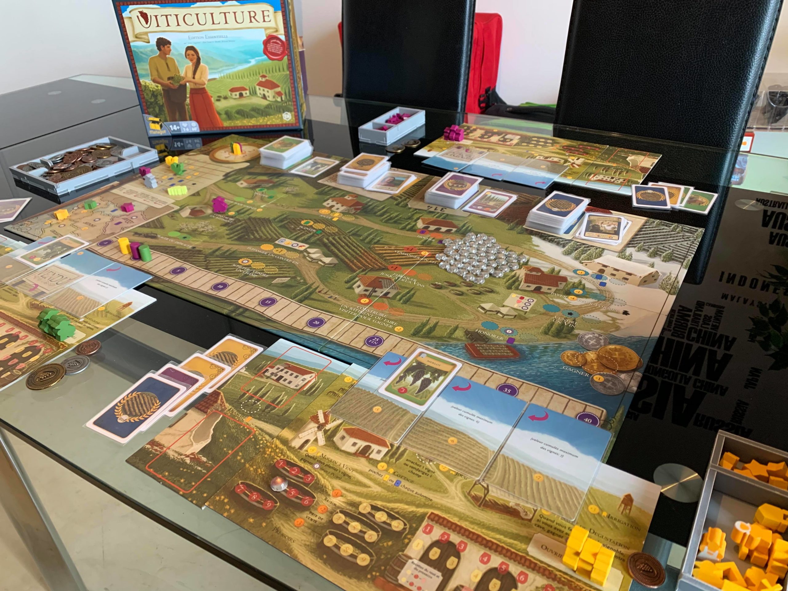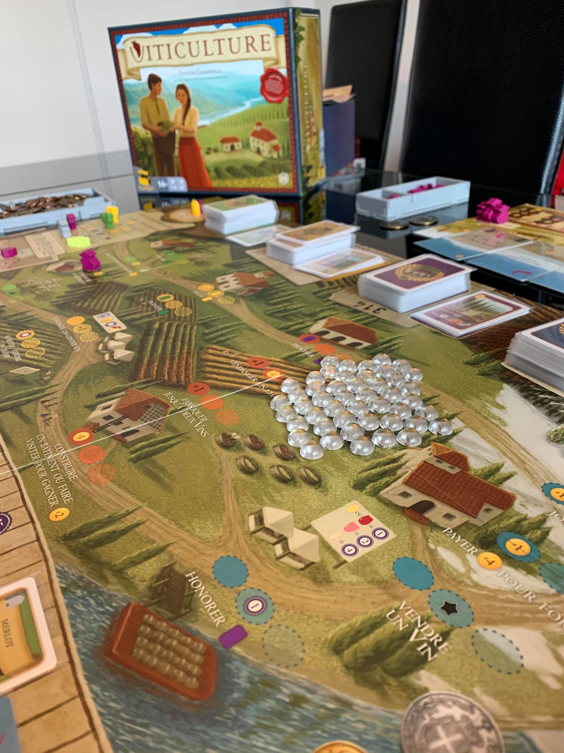 Viticulture est un excellent jeu, en matière de pose d’ouvriers, un des meilleurs. Le niveau est familial plus, pas de grosse réflexion et le hasard des cartes ne lui permet pas de se classer parmi les jeux experts.