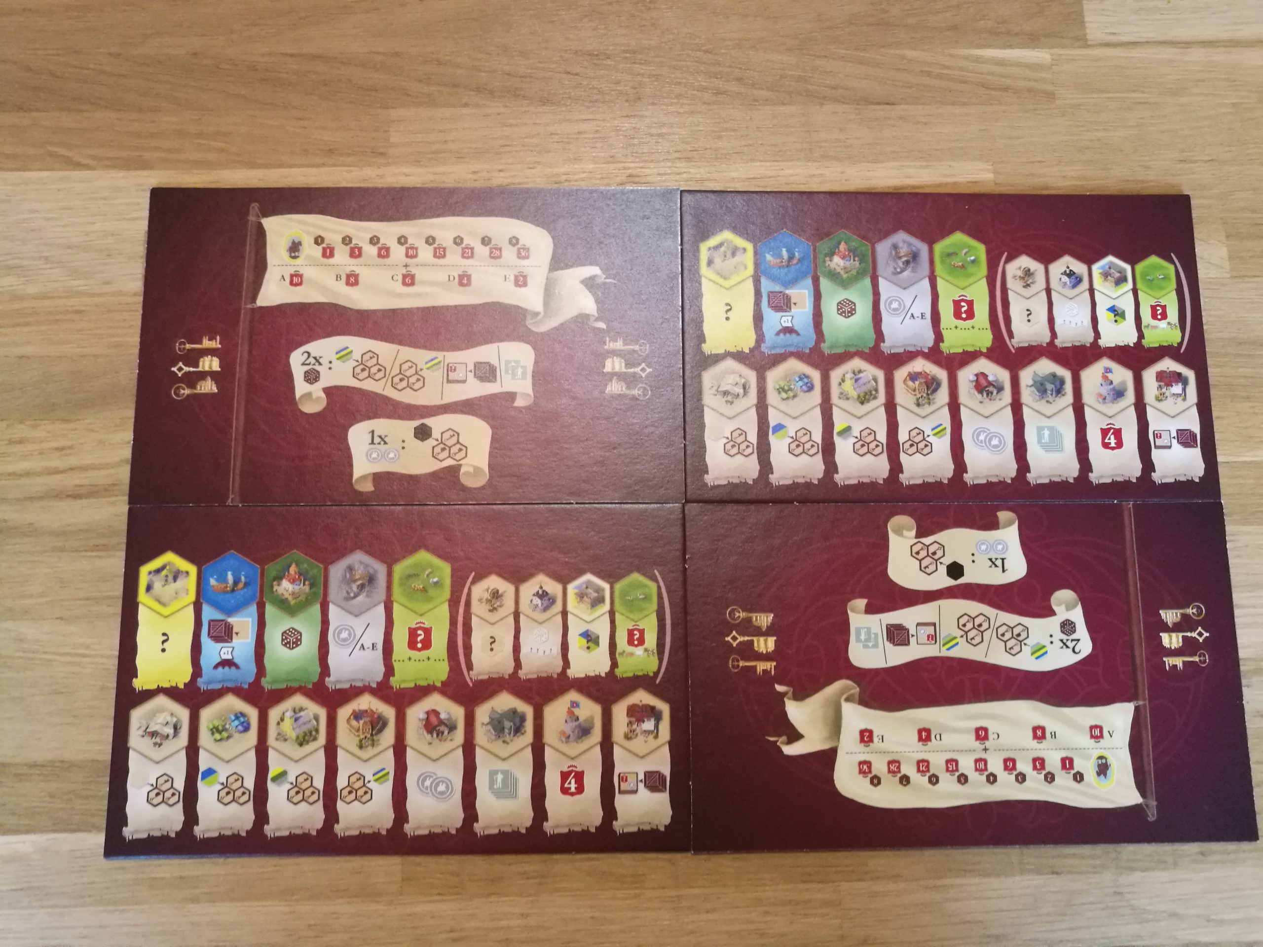 La nouvelle phase peut commencer, on retire tous les bâtiments non achetés lors de la phase précédente, on les remplace par des tout neufs et on recommence jusqu’à ce qu’on ait effectué l’intégralité des 5 phases (soit un total de 25 tours de jeu par joueur) et on procède au décompte final des points.