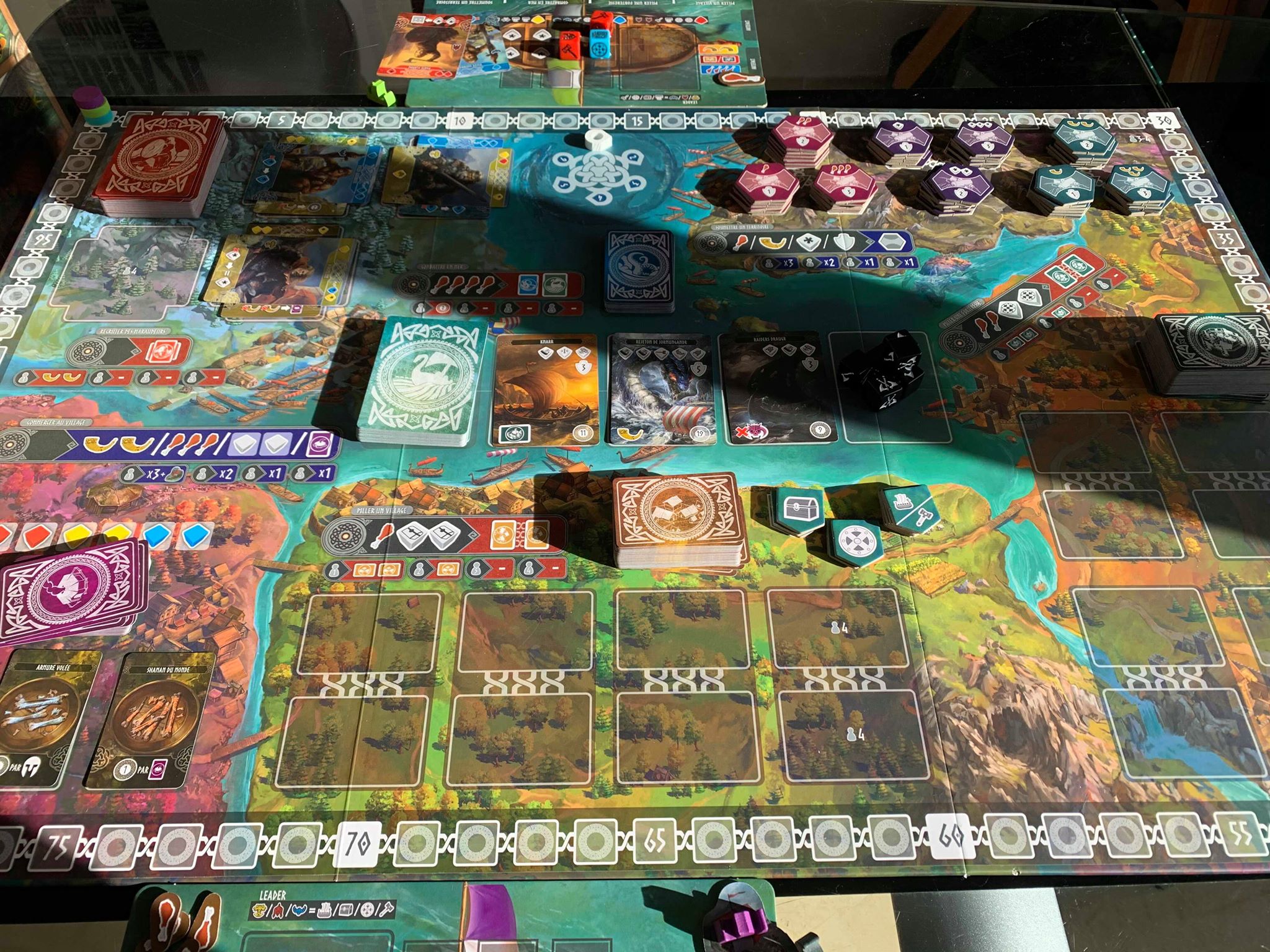 Ici aussi, vous récupérerez des cartes par paires. Le but est de créer des collections qui vous rapporteront des points en les complétant. Des faveurs d’Odin sont également disponibles et si vous faites un combat, vous pourrez gagner des jetons de majorité.