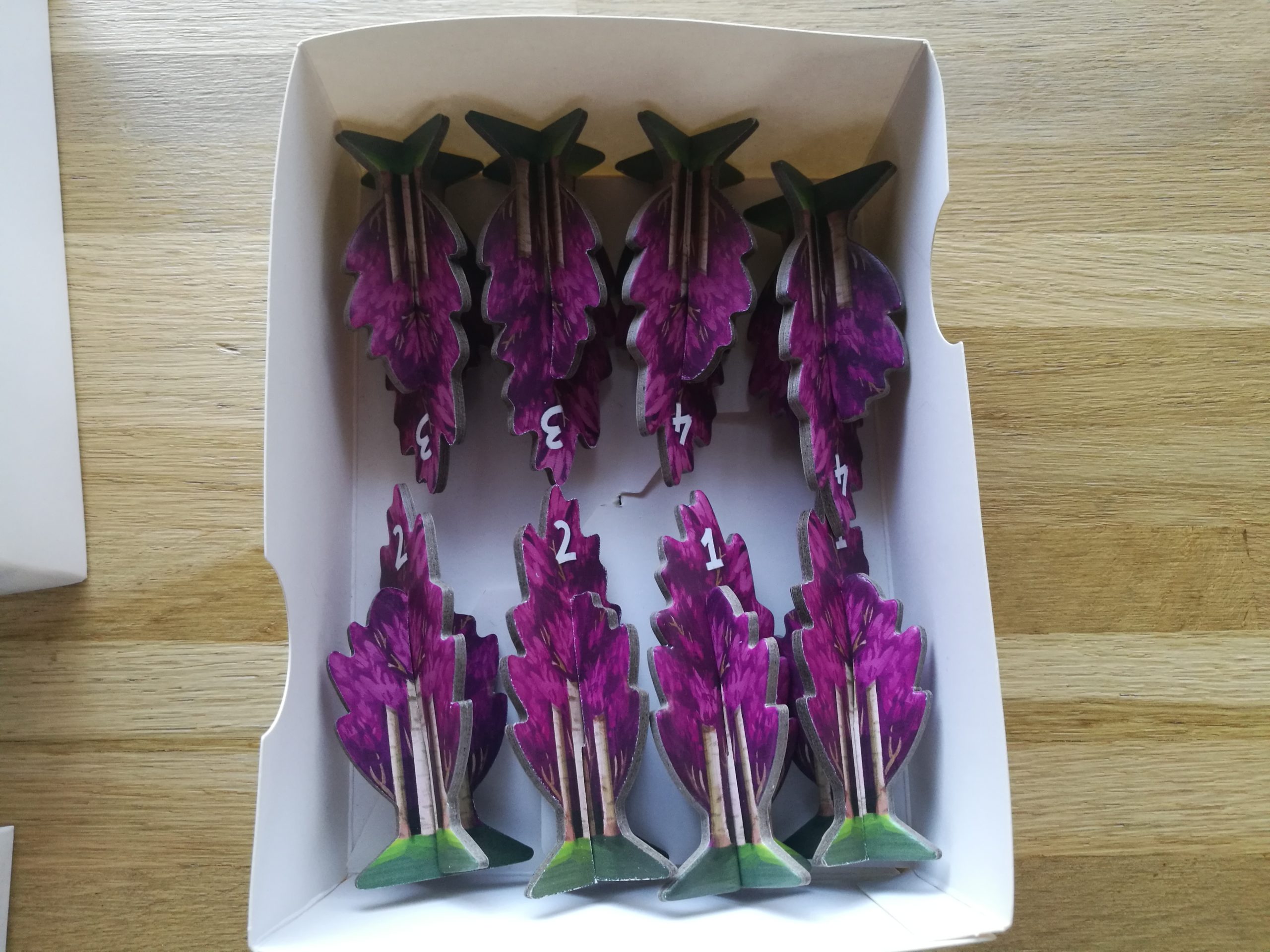 Un petit insert en papier épais a été pensé pour ranger les arbres et jetons de chaque joueur et pouvoir poser le plateau central et le plateau des points de victoire par-dessus.
