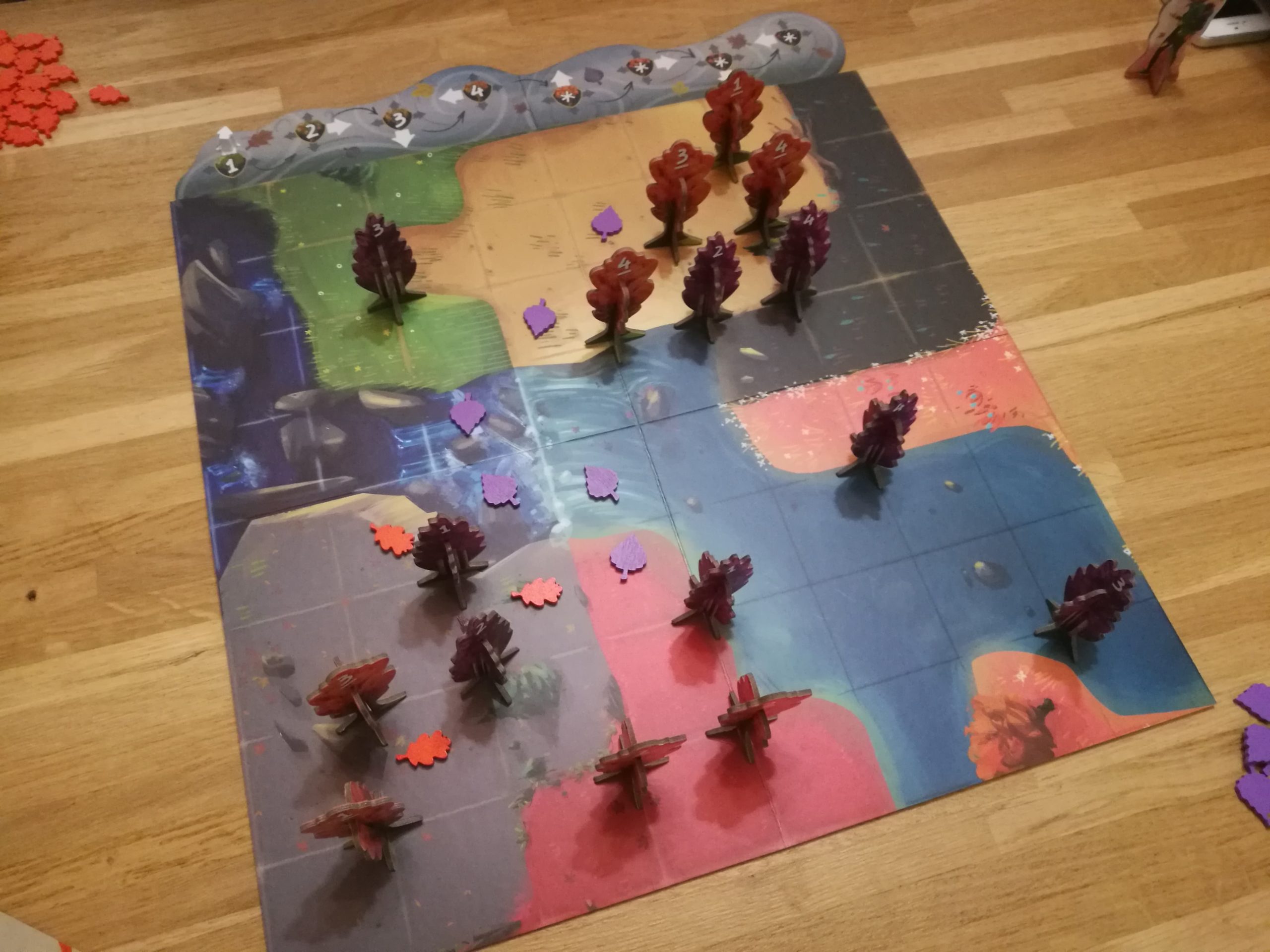 Il est très joli, très calme, les interactions indirectes bien pensées car on s’affronte sans pour autant vraiment se faire de mal (sauf quand on ruine la domination d’un joueur en recouvrant ses feuilles MOUAHAHAHAHAH !!!!!), est adapté à quasiment tous les âges et types de joueurs.