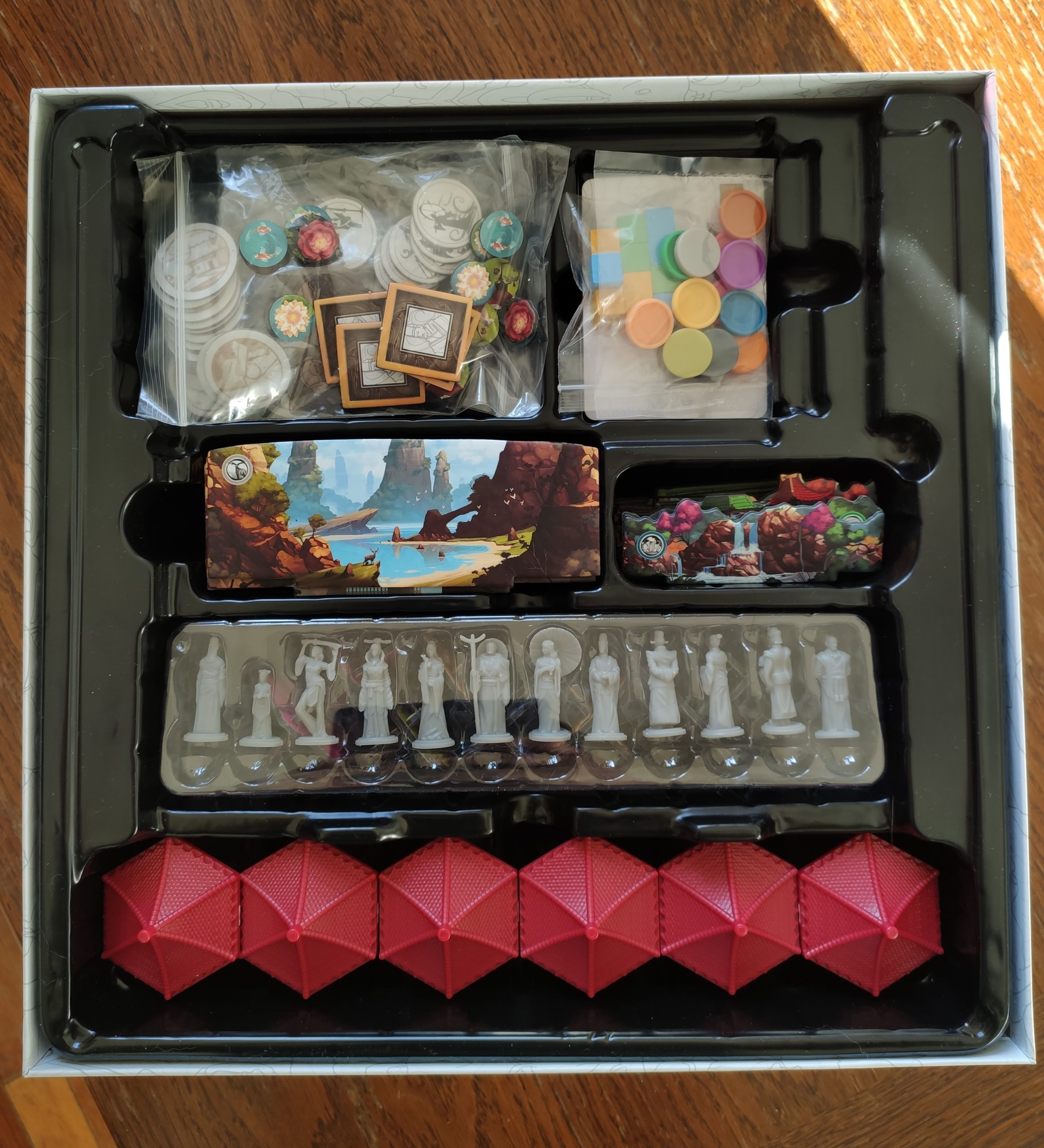 Tang Garden est un euro-game poétique et contemplatif, servi par un matériel de très bonne qualité qui participe à l’immersion dans cet univers reposant et somptueux. Il y a plusieurs manières de scorer et il vous faudra quelques parties pour bien les appréhender toutes.