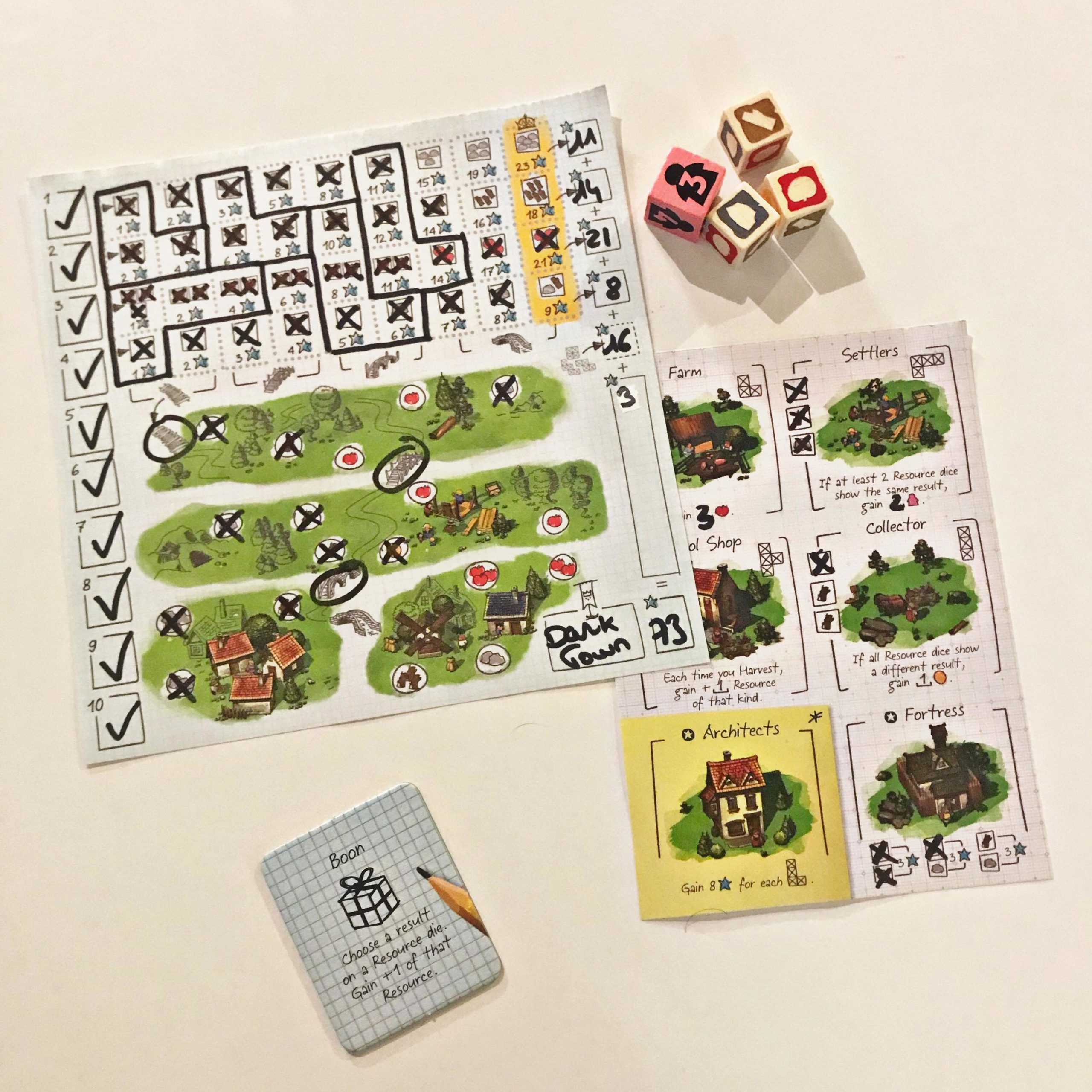 Vous n’aurez que 10 tours pour construire le village qui vous rapportera le plus de points. Vous pourrez débloquer des ponts pour accéder à des ressources supplémentaires et bâtir des monuments pour gagner des bonus permanents très utiles.