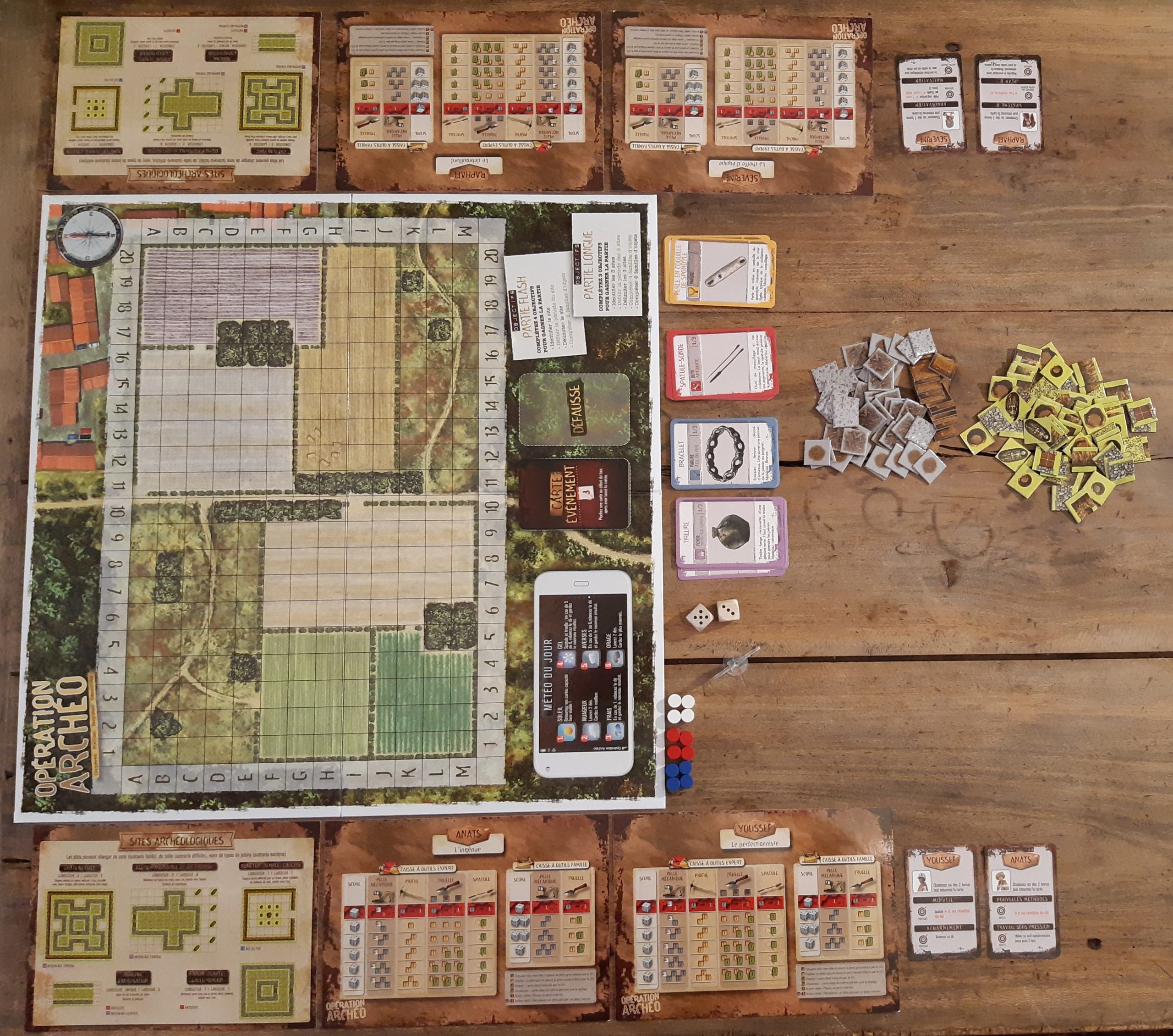 Opération Archéo est l’œuvre d’un archéologue passionné (pléonasme ?) qui nous emmène dans le charmant village de Trifouilly les Oies à la recherche de sites archéologiques menacés par la construction d’un centre commercial. Ce jeu coopératif « d’enquête archéologique », nous propose de réaliser un « diagnostic archéologique » (selon les termes de l’auteur) et nous plonge au cœur de ce métier passionnant. A vous de trouver ces précieux sites pour les préserver de la destruction !
