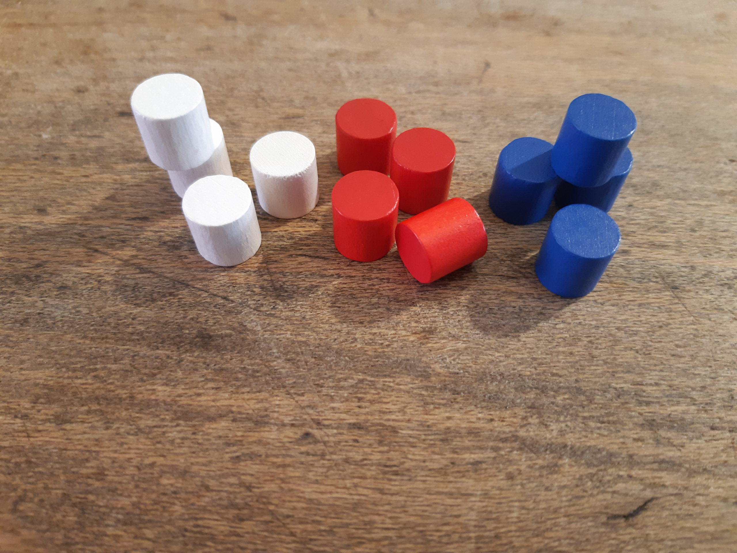 Les pions Délimitation sont placés à proximité du plateau, ainsi que les deux dés. Ces pions vous permettront de matérialiser les limites du / des site(s) lorsque vous l’ / les aurez identifié(s).