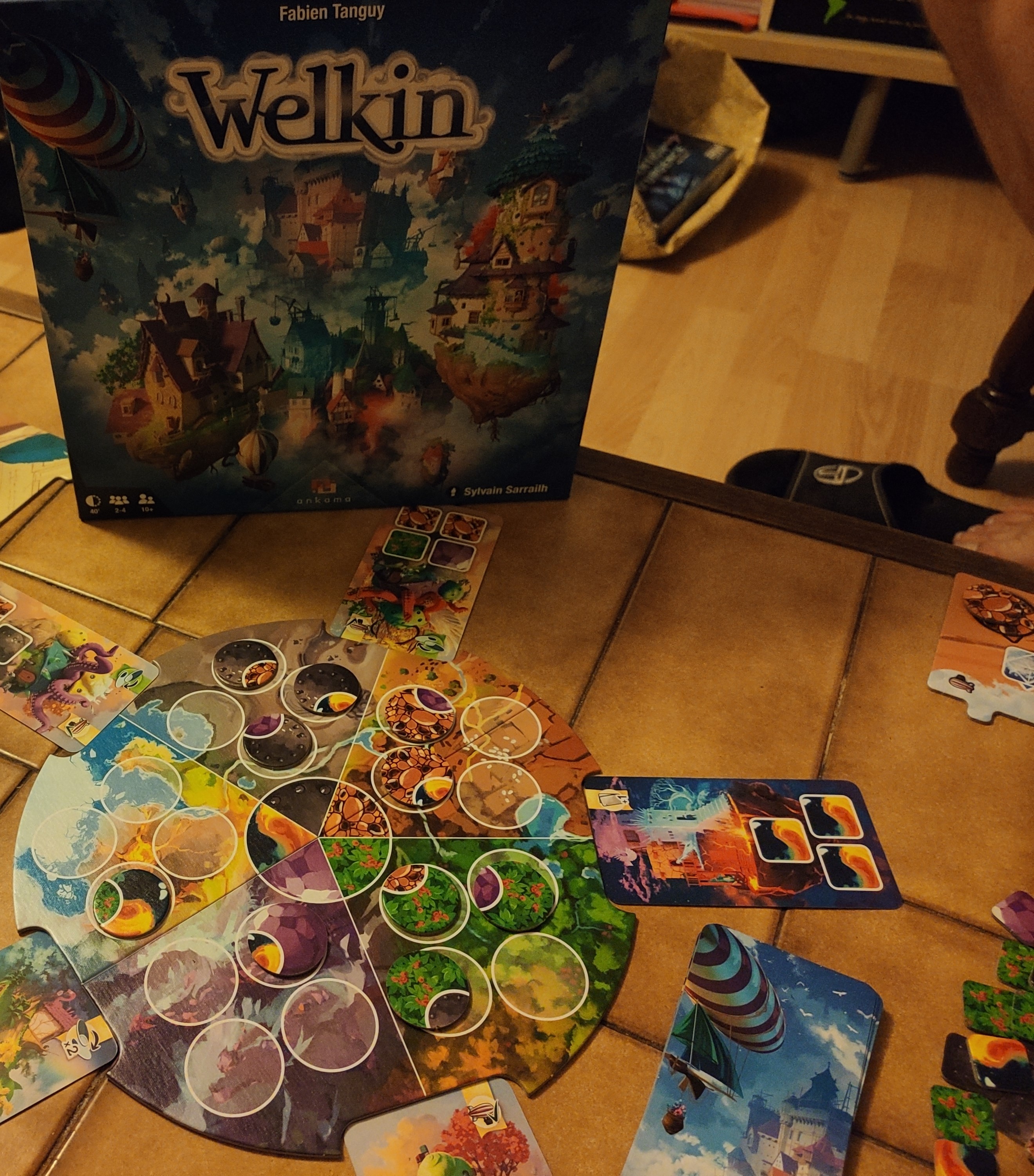 Super jeu que ce Welkin! Assez simple à prendre en main, mais il offre des possibilités de se triturer le cerveau à la recherche d’optimisation de ses actions. Il va falloir rechercher le combo validation des chantiers au moment où le cours des ressources est au plus haut. Mais forcément vos adversaires ne l’entendront peut-être pas de cette oreille, et comme dans la vraie vie, la bourse ne cesse de fluctuer et l’avantage pour l’un n’est peut-être qu’un inconvénient pour l’autre!