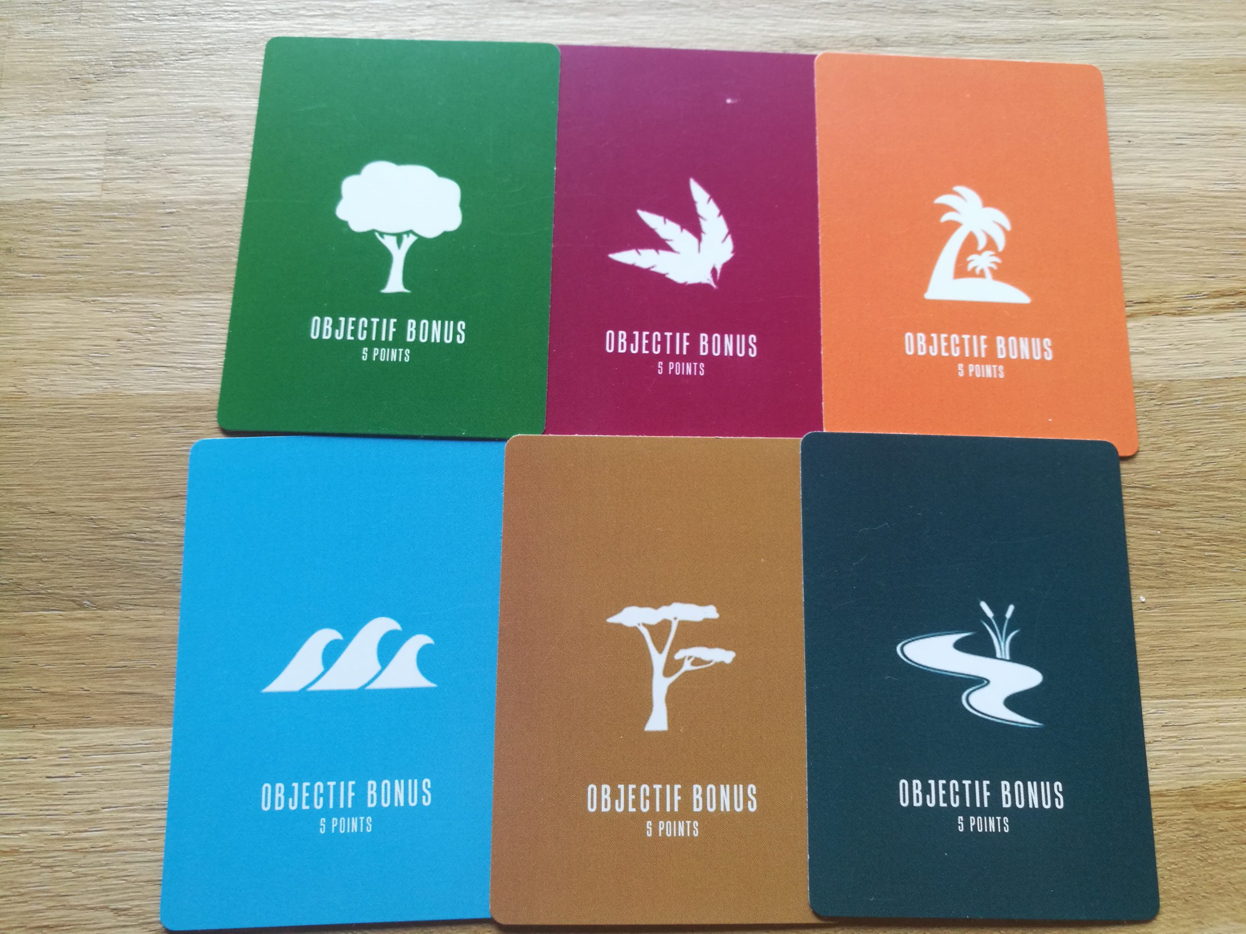 Le jeu se termine quand un joueur à validé 5 objectifs, ou 6 si vous souhaitez des parties plus longues.