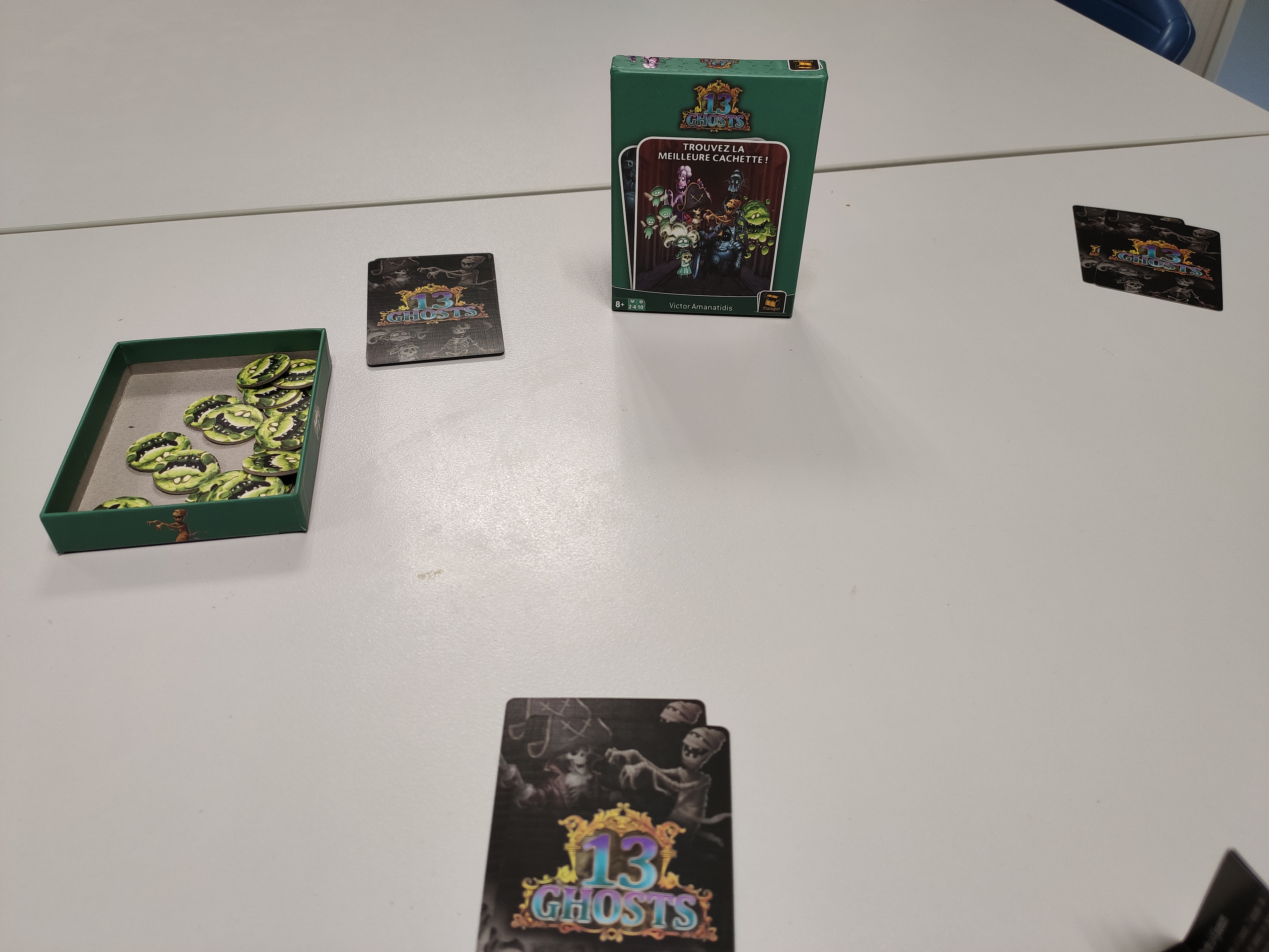 Nouveau venu dans la collection Mini Games de chez Matagot, 13 Ghosts est un jeu de déduction et de bluff. Les fantômes se disputent pour savoir qui dirigera la maison hantée. Le gagnant sera celui qui trouvera la meilleure cachette!