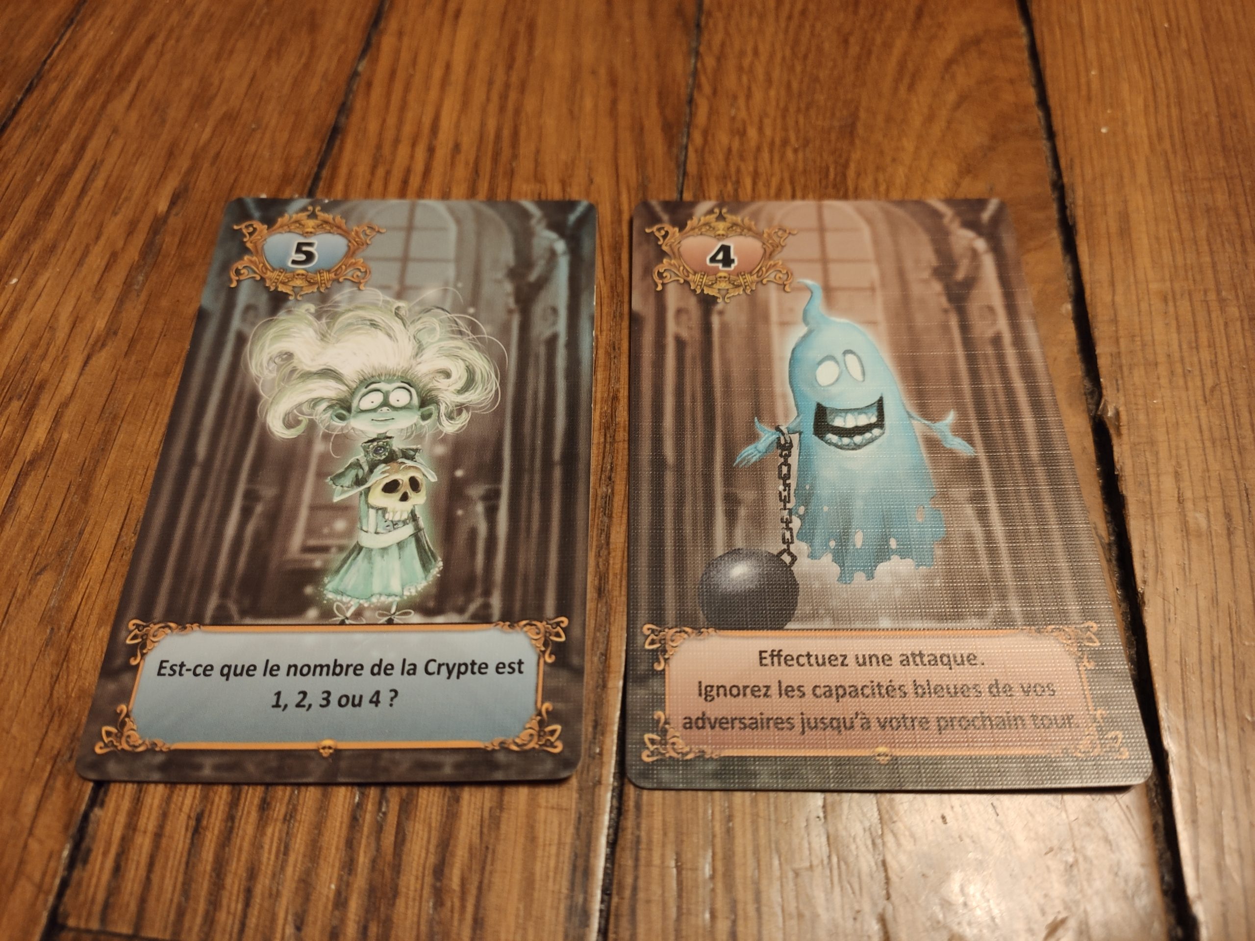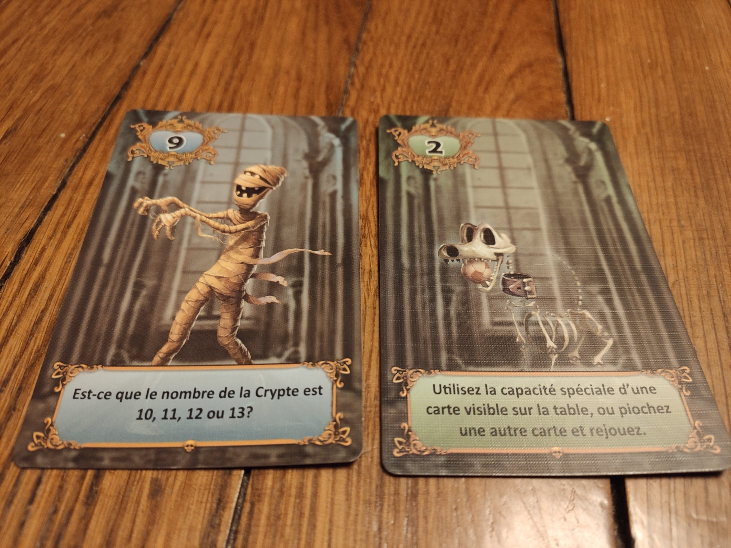 Chaque joueur va choisir une carte qu’il pose face cachée devant lui et qui devient la crypte. La 2ème carte constitue la main de départ.
