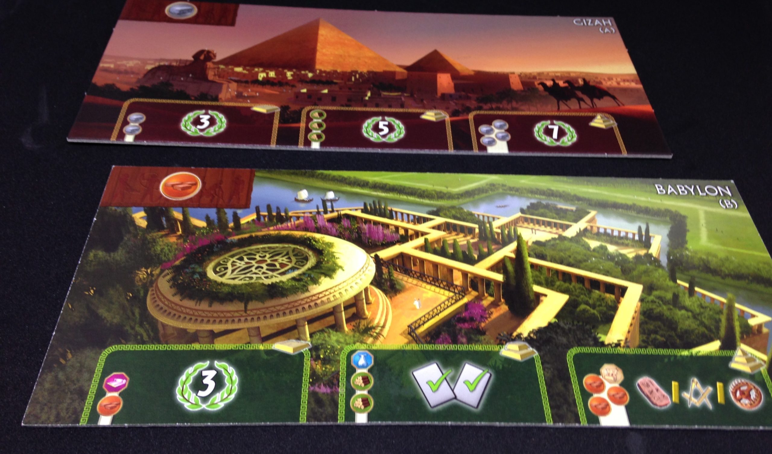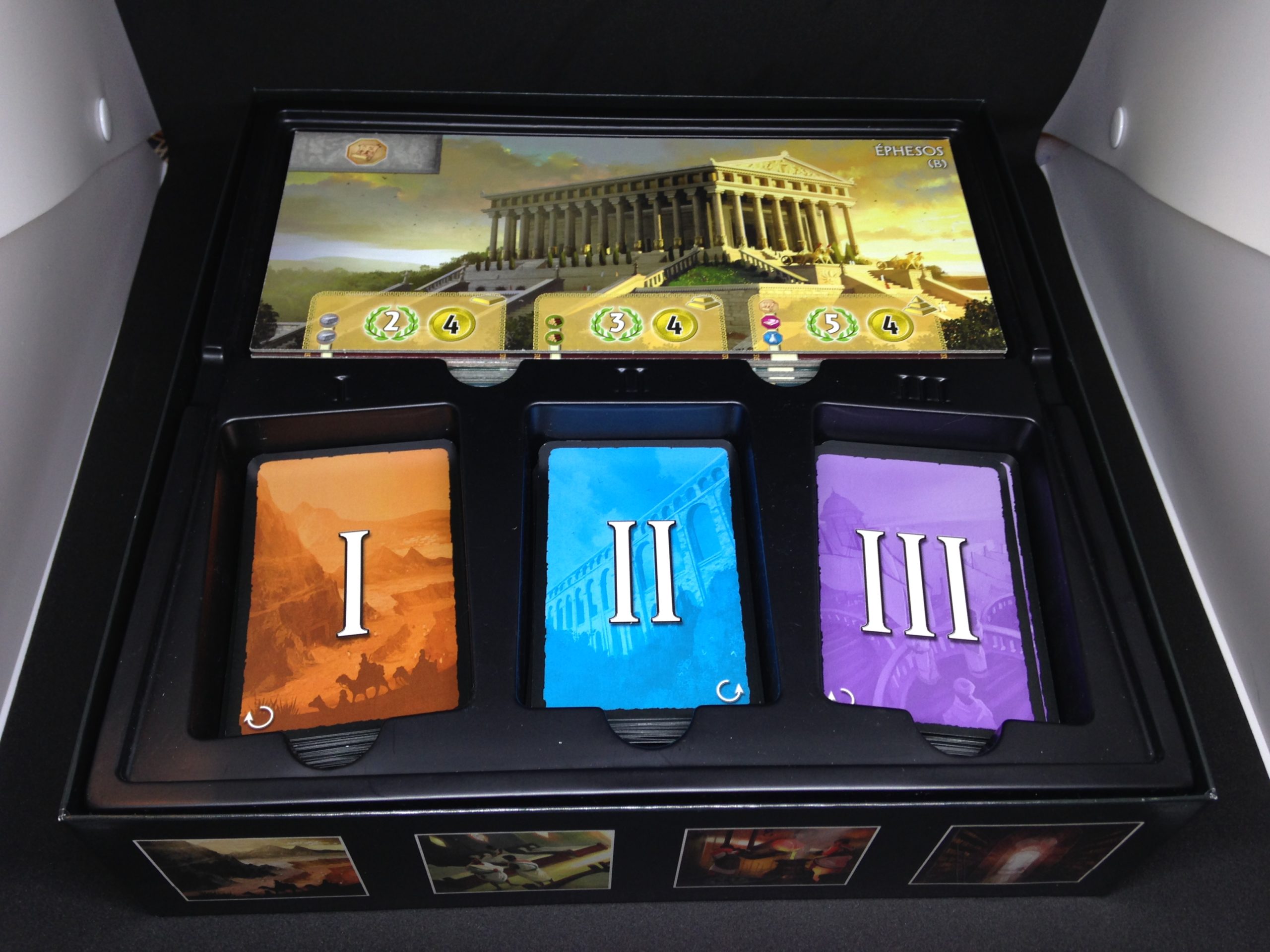 Chaque joueur dispose aussi d’une merveille dont il pourra bâtir les étages au fur et à mesure de la partie pour débloquer des récompenses, ressources ou PV.