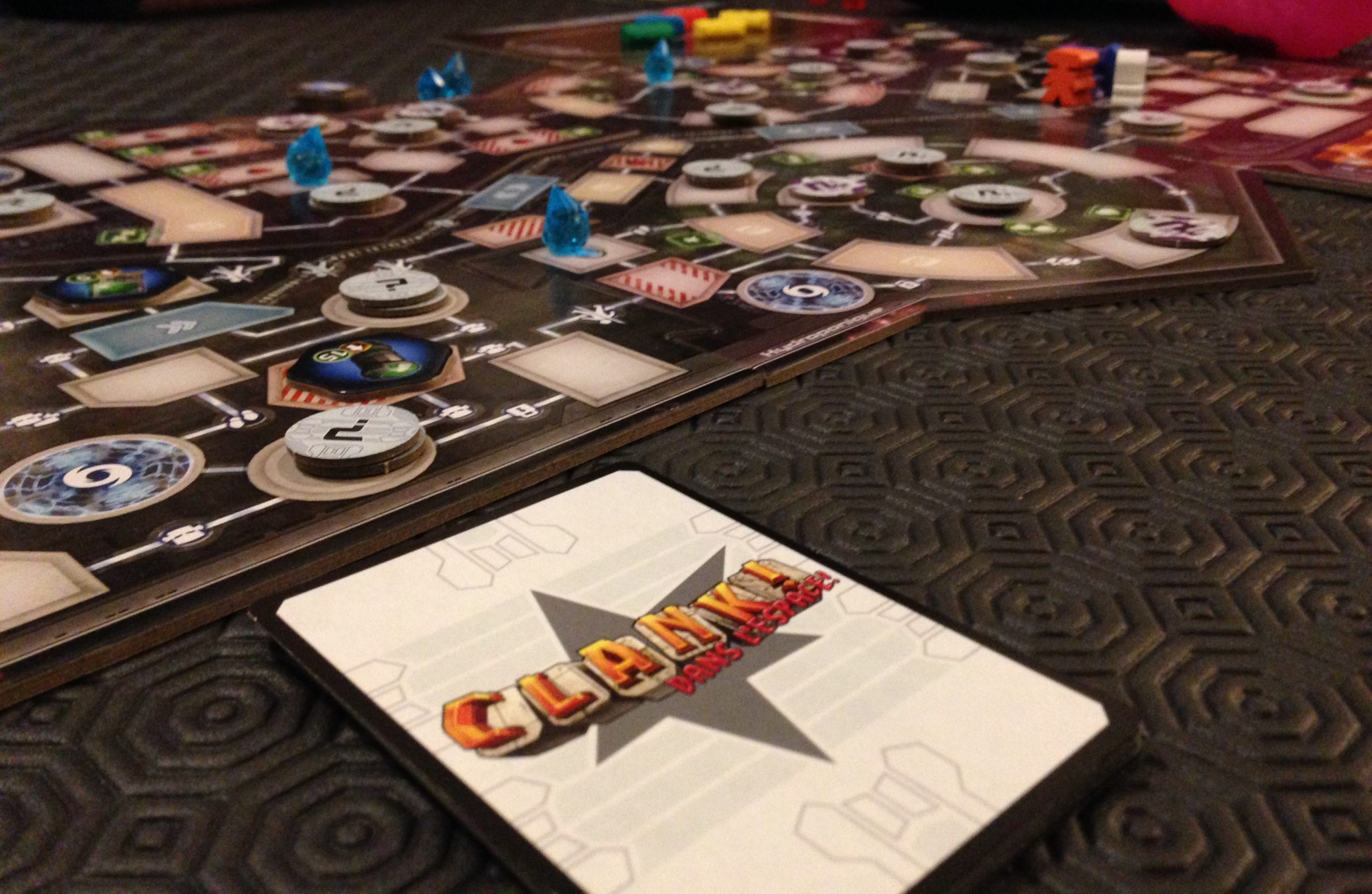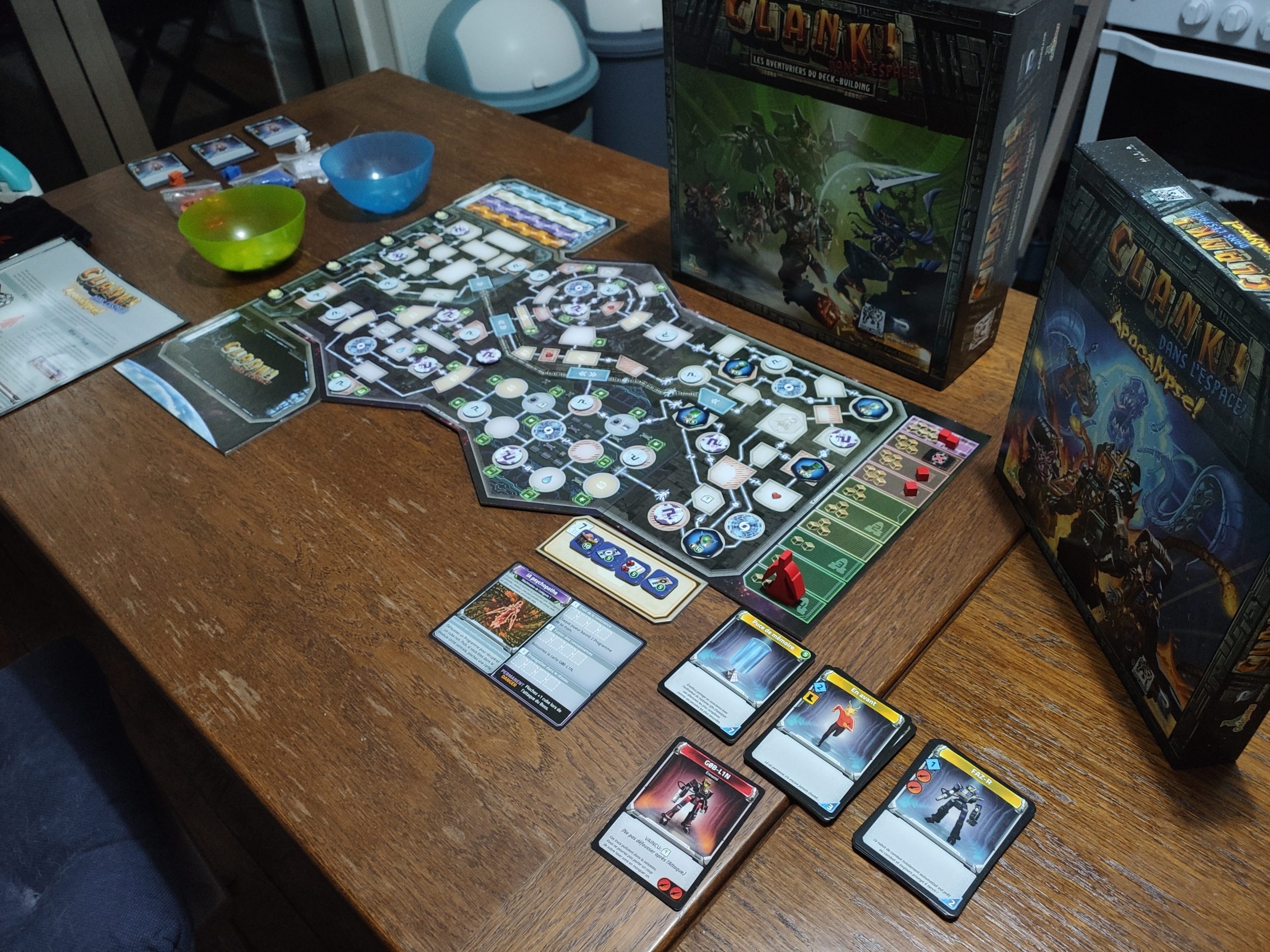 Comme indiqué plus haut, les mécaniques principales sont similaires avec la version médiéval-fantastique, je vous laisse donc y jeter un œil si vous ne connaissez pas le jeu Clank! Si vous êtes familiers du jeu, on va s’attarder sur les nouveaux ajouts.