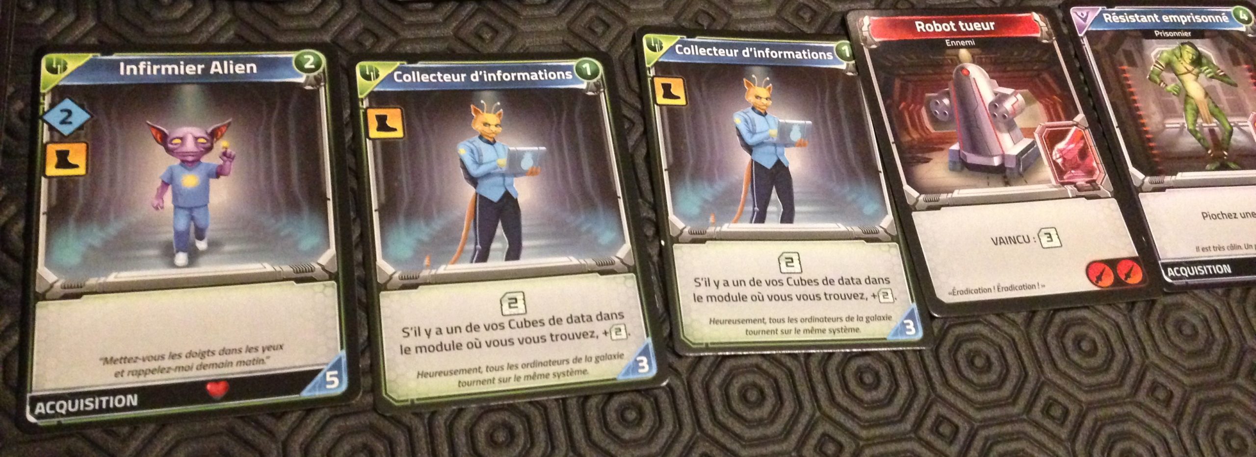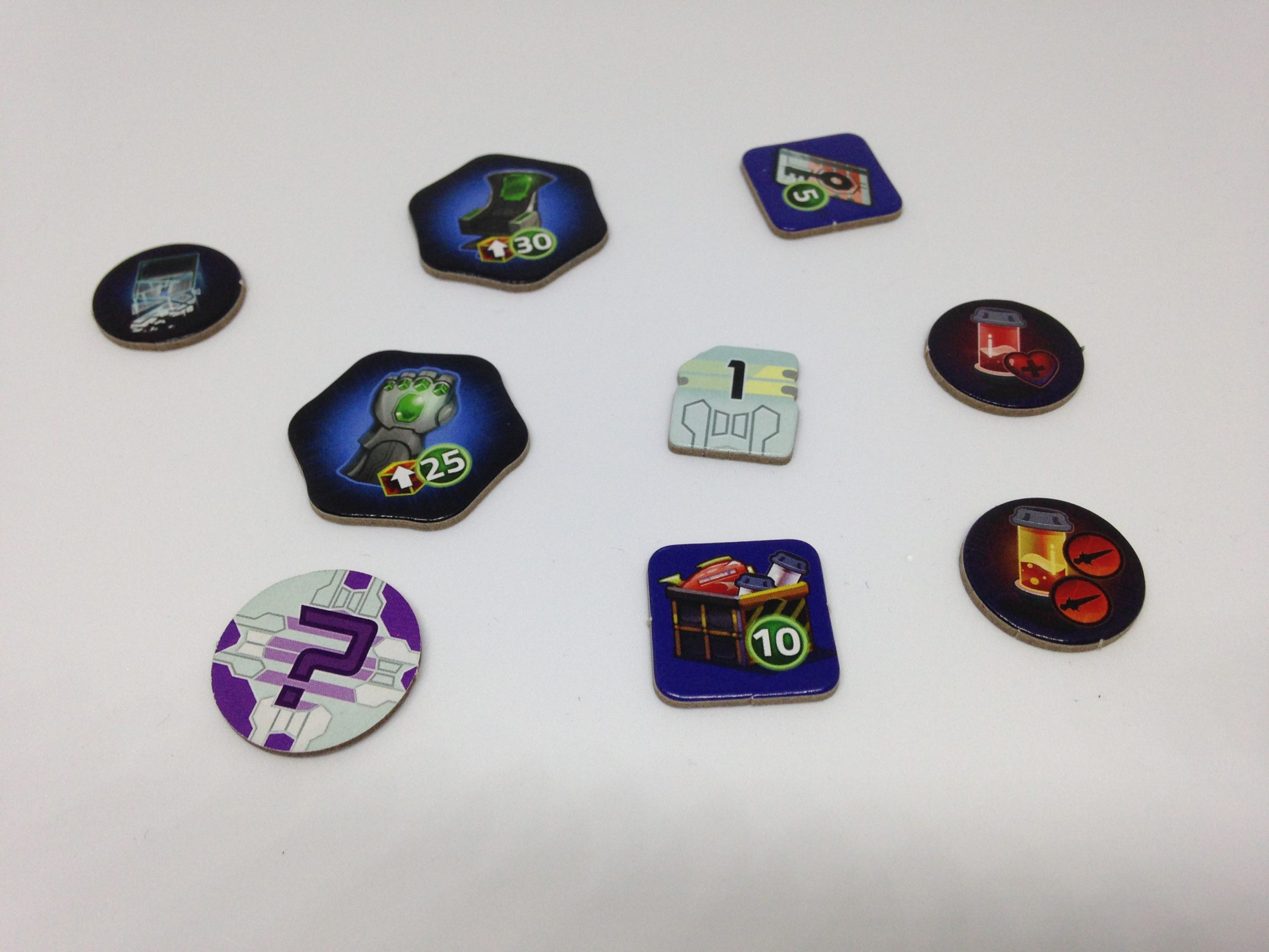 Les cubes noirs récupérés peuvent être échangés ou faire office de PV en fin de partie. C’est plutôt bien vu et chaque joueur pourra les utiliser comme bon lui semble, en les conservant jalousement, ou en les utilisant si le besoin s’en fait sentir.
