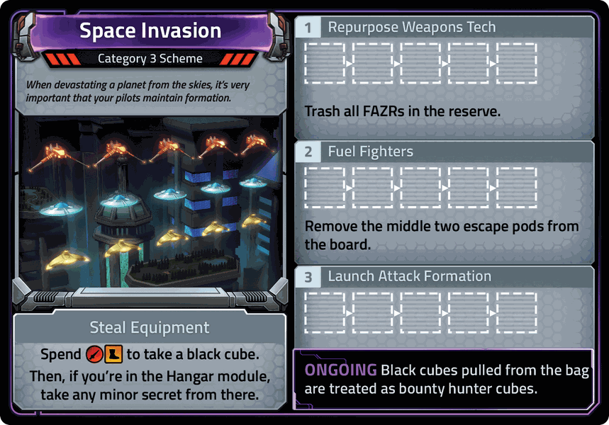 Autant vous dire que laisser les Machinations aller au bout de leurs 3 phases n’est pas recommandé, et rajoute une sacrée pression sur vos épaules de voleurs intersidéraux!