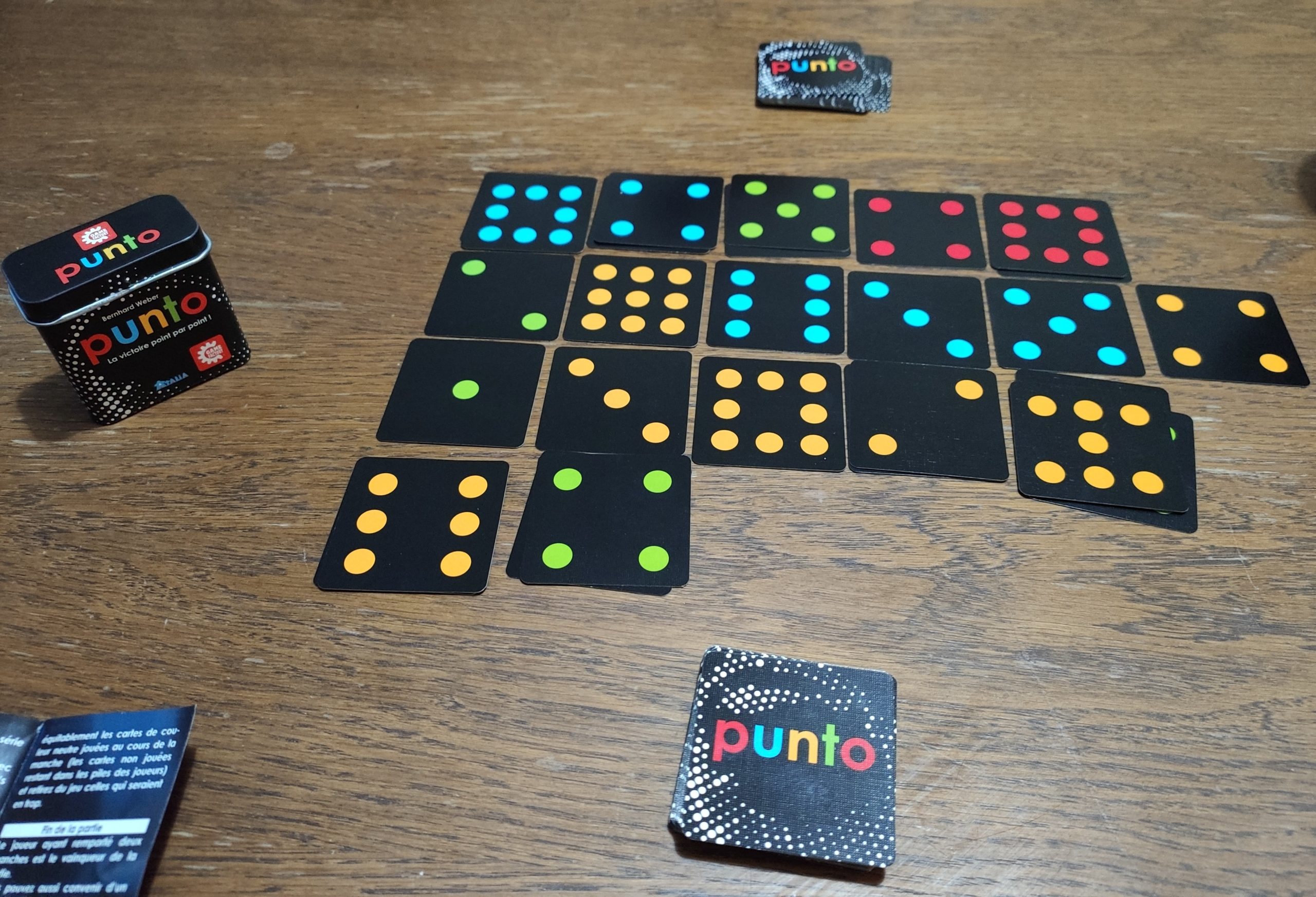 Punto est un jeu de combinaisons de cartes créé par Bernhard Weber, illustré par Nadine Hauser, édité par Game Factory, et distribué par Atalia.