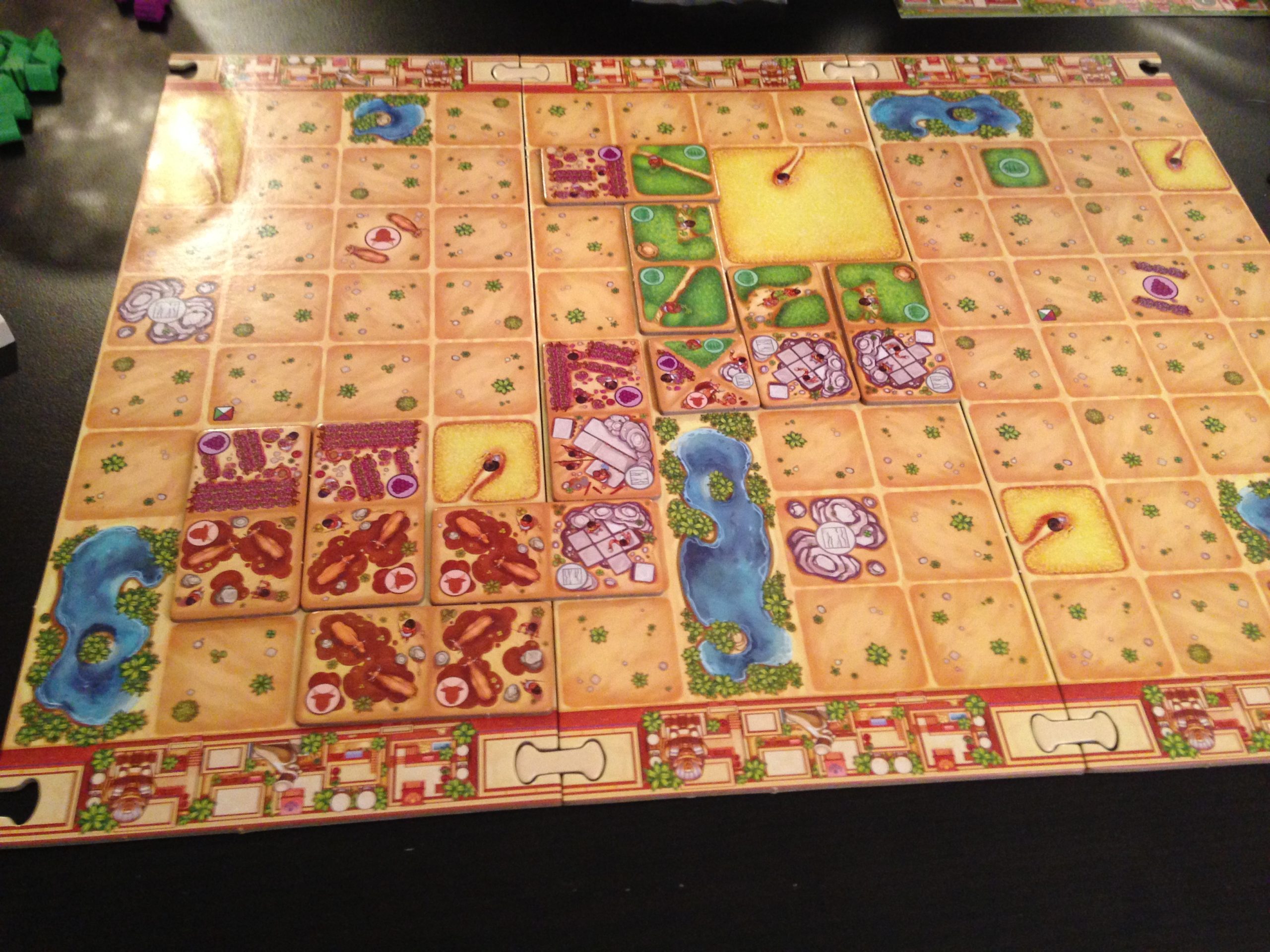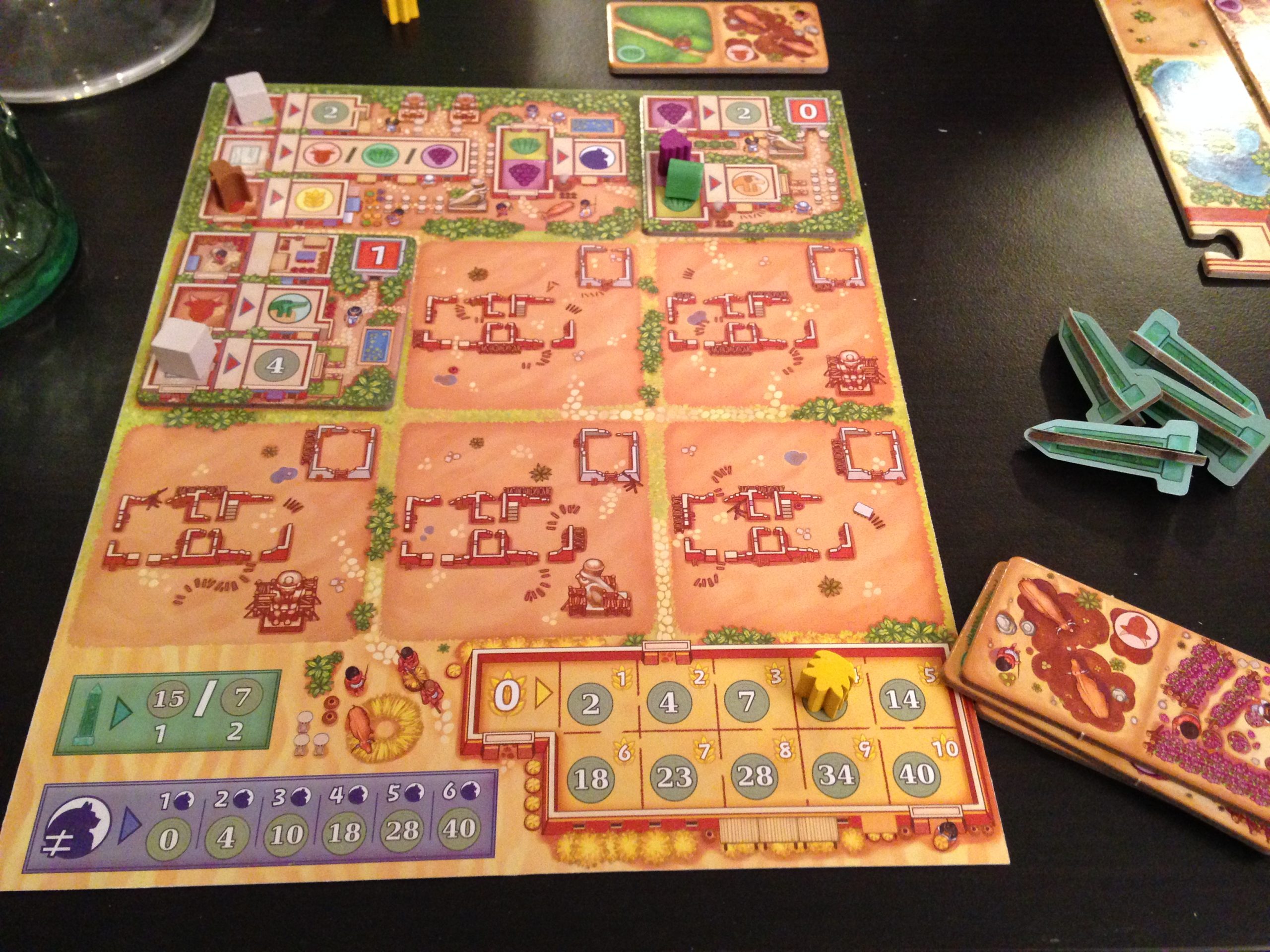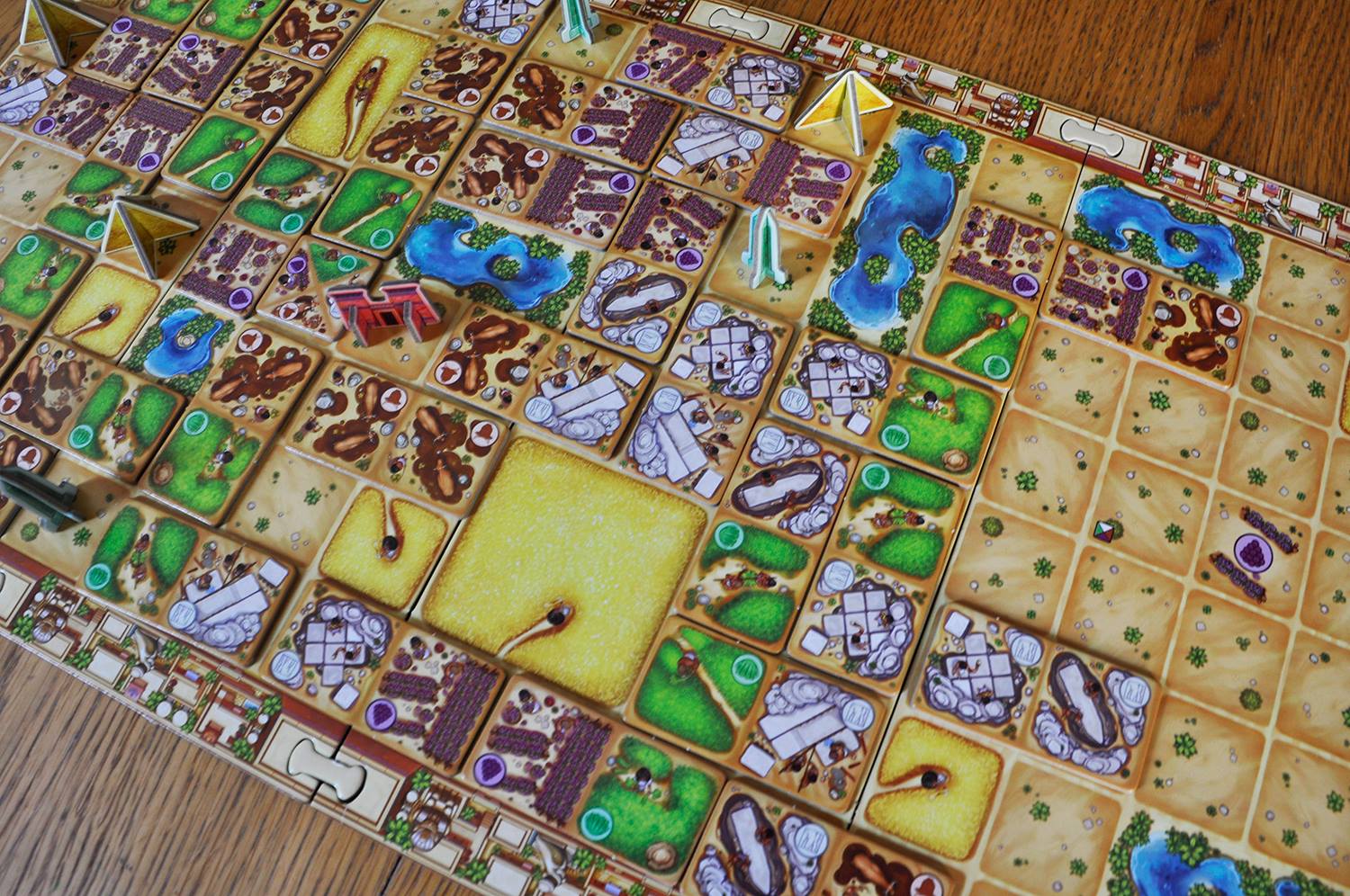Une piste (un marché) est donc ajoutée avec la possibilité d’acheter plus ou moins cher selon la position du carré, et non un domino double, un bâtiment spécial qui rajoutera des moyens additionnels de calcul, des chevaliers, la valorisation de certains terrains, etc…