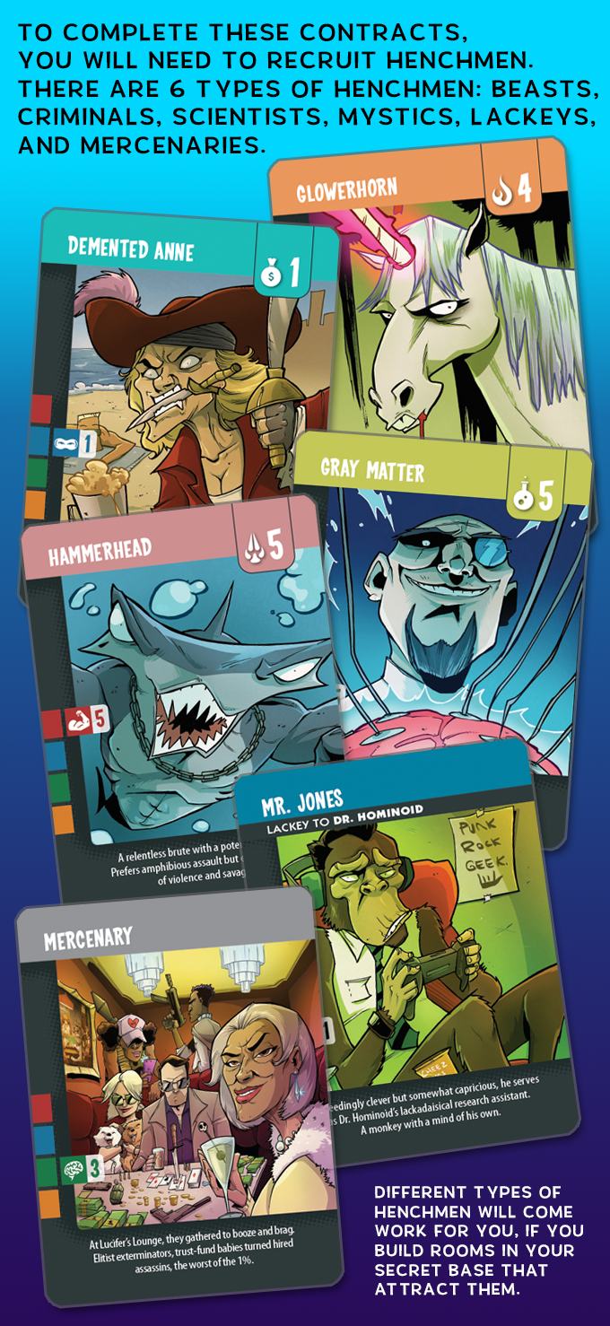 Pour cela il va falloir recruter des hommes de main pour leur confier les basses besognes, remplir des contrats à travers le globe, et construire et améliorer sa base maléfique!