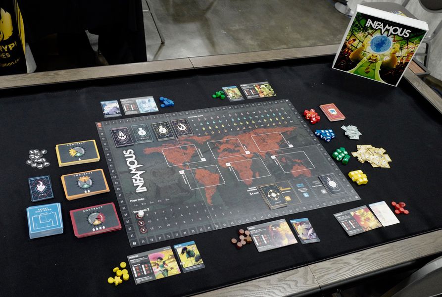 Ceci étant dit Infamous semble être un jeu fort sympathique! Le thème est bien exploité et les illustrations subliment ce jeu. Rob Guillory est extrêmement doué et on peut le vérifier avec ce jeu. Dans cette course à l’infamie, vous devrez construire et améliorer votre base, recruter les hommes de main qui vous correspondent, et prendre des risques en réalisant des contrats de + en + durs! La prise de risque paiera-t’elle? On n’obtient rien sans rien, et un grand pouvoir implique de grandes responsabilités 😉