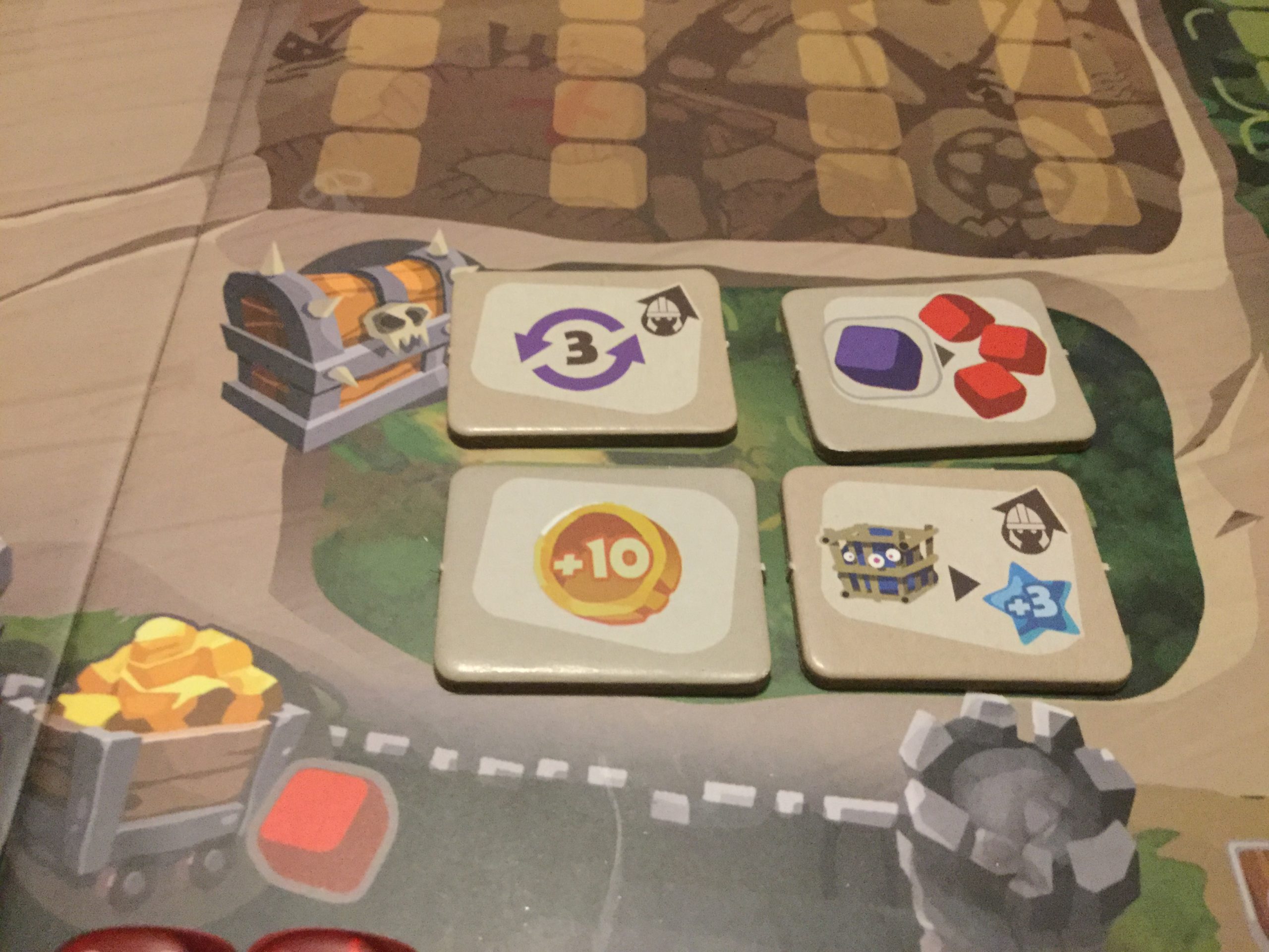 Comme les tuiles que vous prenez dans votre cité au début du tour sont positionnées faces cachées, vous ne savez pas à l’avance ce que vous aurez comme ressources ou comme ouvriers pour le tour à venir. Du coup votre stratégie peut être amenée à évoluer en fonction de cette part de hasard.