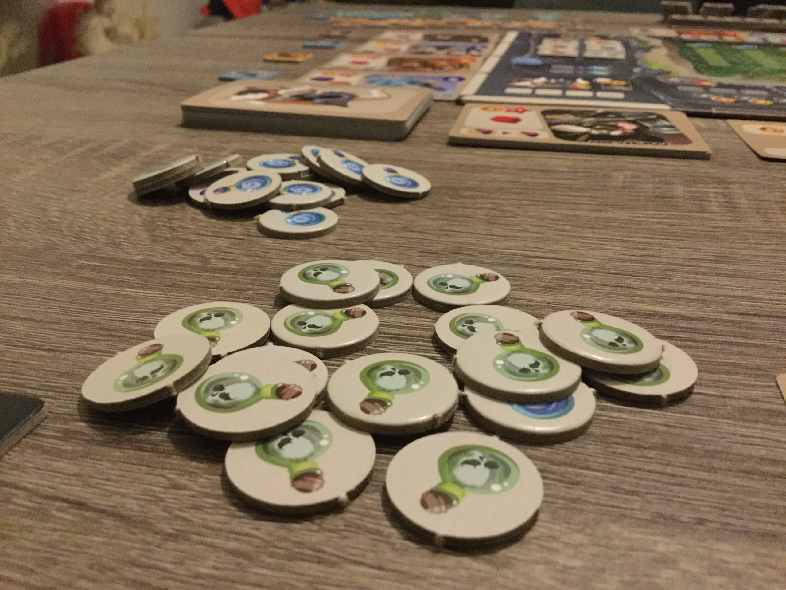 L’iconographie est copieuse à assimiler et lorsque les éléments s’accumulent sur le plateau, il faut un temps d’adaptation pour tout bien distinguer. Cela peut donner une impression un peu brouillonne qui peut gêner, d’autant que pour scorer il faut orienter ses personnages vers un point cardinal qui comporte les icônes recherchées, mais après quelques tours de jeu, tout s’éclaire 😉