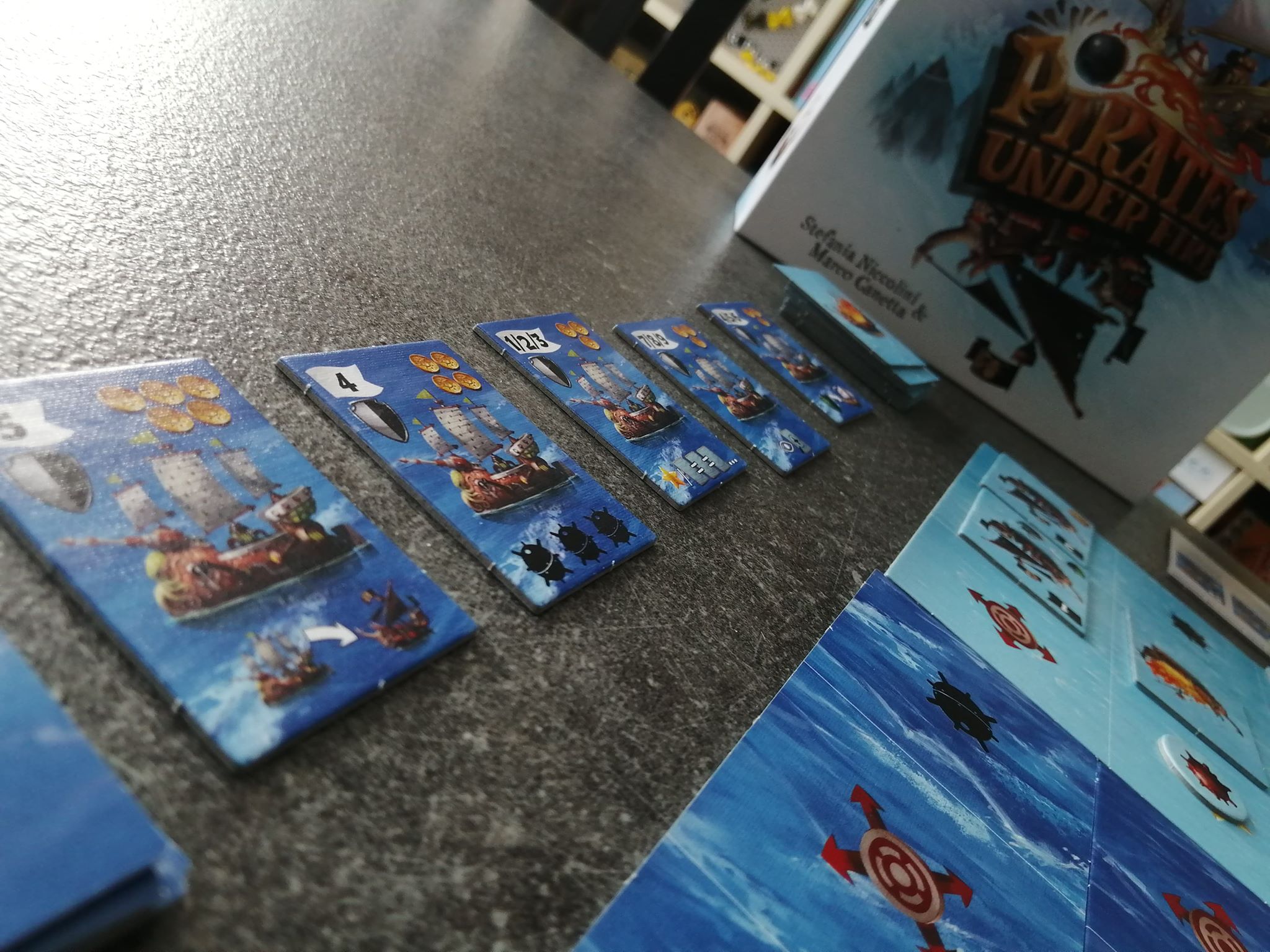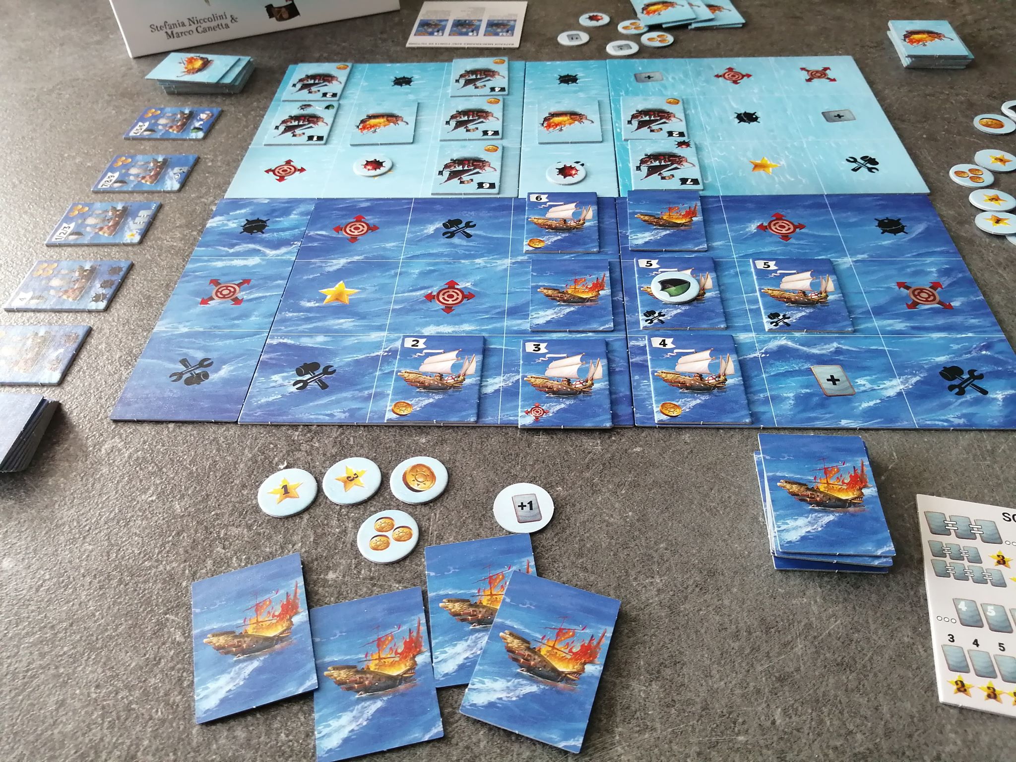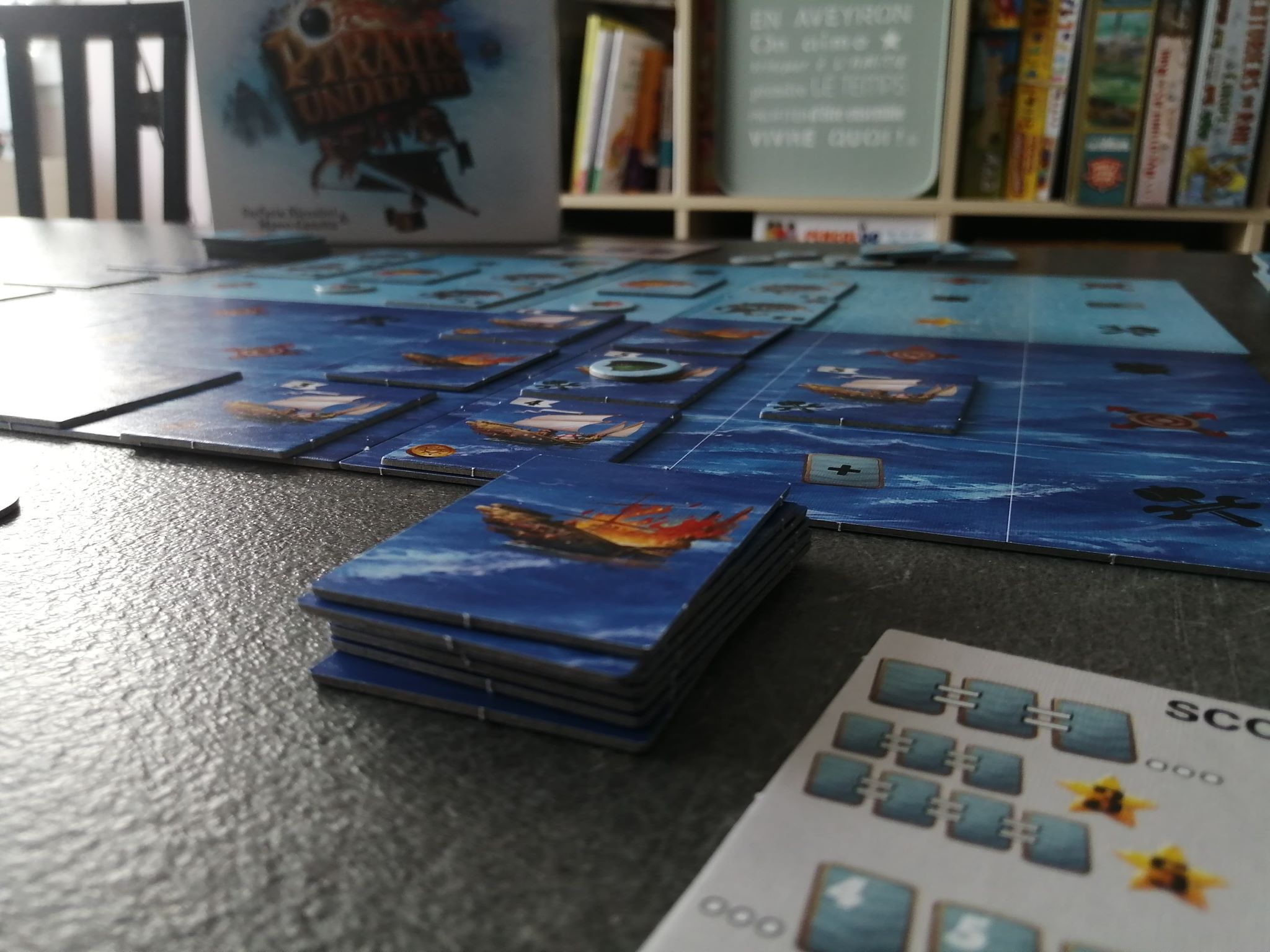 Attention sous ces airs de jeu familial voir enfantin, nous avons à faire à un jeu où la réflexion sera grandissante, et surtout où il faudra vous adaptez au mieux en réaction aux coups de votre adversaire. Action, réaction, planification, un vrai jeu qui monte en puissance, car si vous ne pouvez plus poser de bateaux avant la fin de votre pile, la partie sera perdue automatiquement, on ne rigole pas avec les capitaines de frégates chez les pirates !