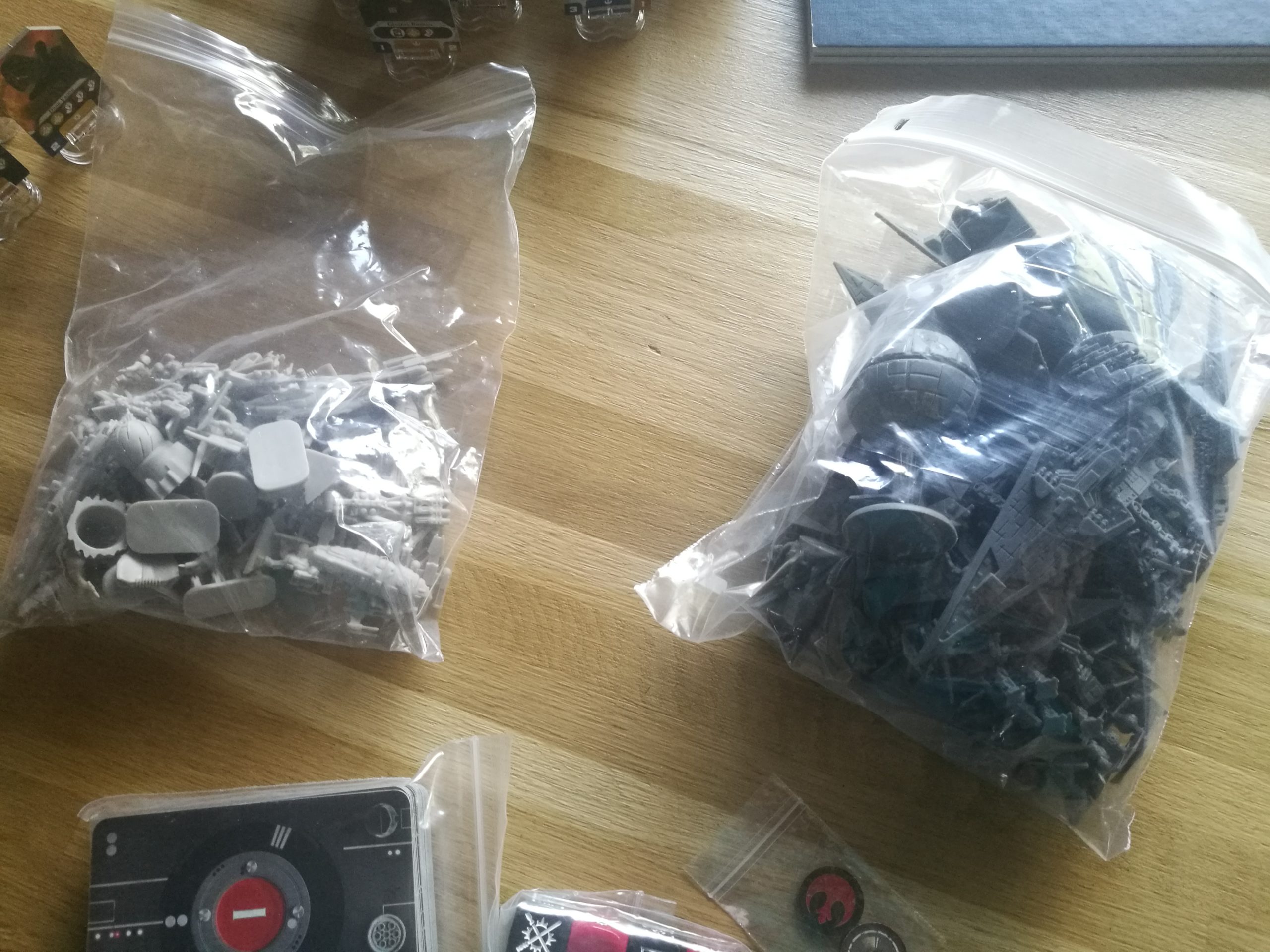 Sauf que comme d’hab avec FFG, bah vous avez une boite, et dedans, tout est en vrac. On reviendra sur le coût que ça représente, mais franchement, d’autres éditeurs y arrivent et font cet effort, va quand-même falloir y penser un jour, parce que vu le prix de base de la boîte, c’est un peu limite quand-même. Je vous laisse juger sur pièces :