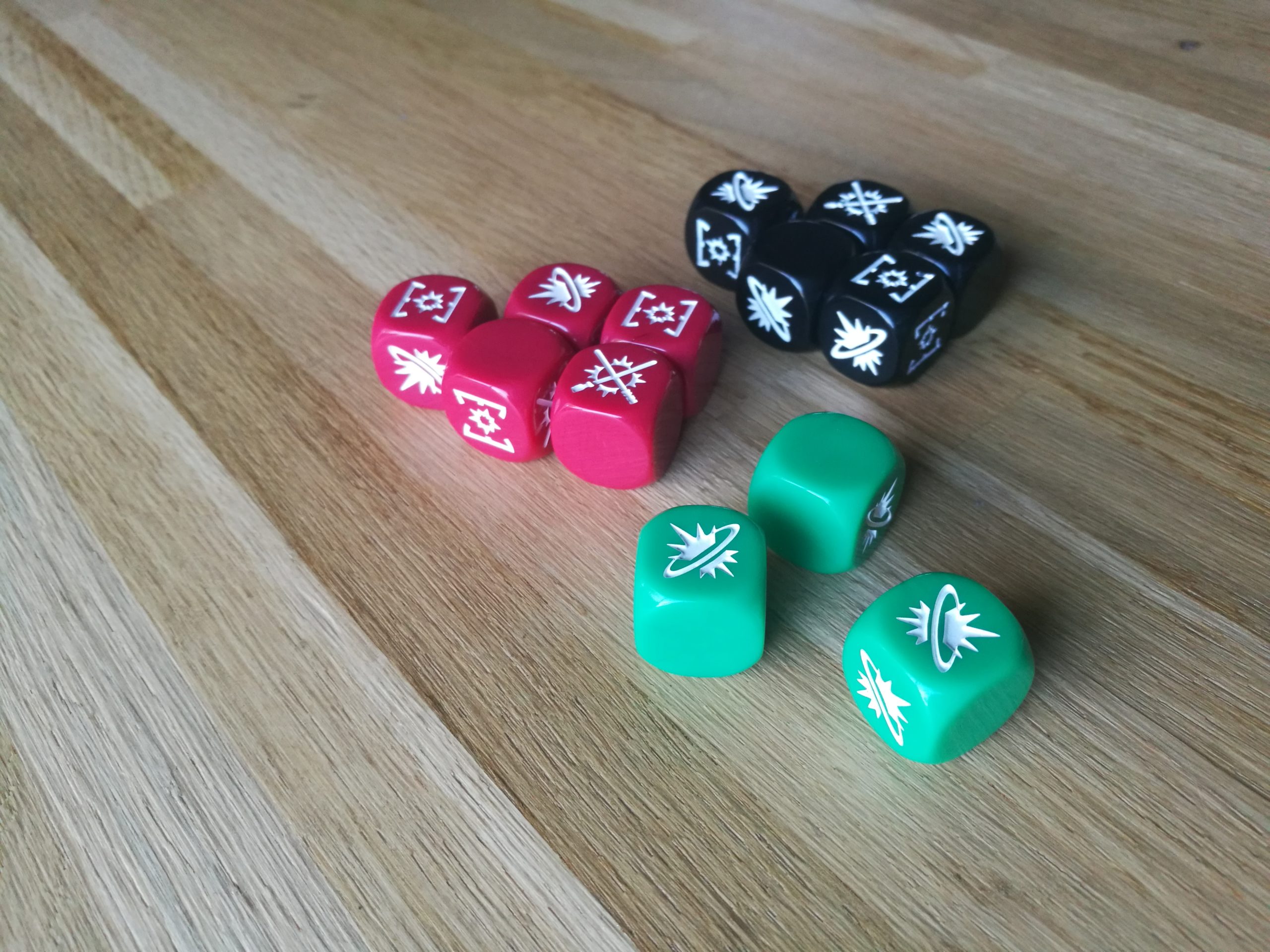 L’extension est pour moi très importante dans le jeu ; sans être indispensable, ses ajouts la rendent vraiment excellente, les combats cinématographiques sont géniaux et même si le dé vert apporte plus de hasard et de rage avec seulement 2 faces sur 6 qui font des dégâts, les ajouts sont vraiment puissants et renouvellent le jeu !