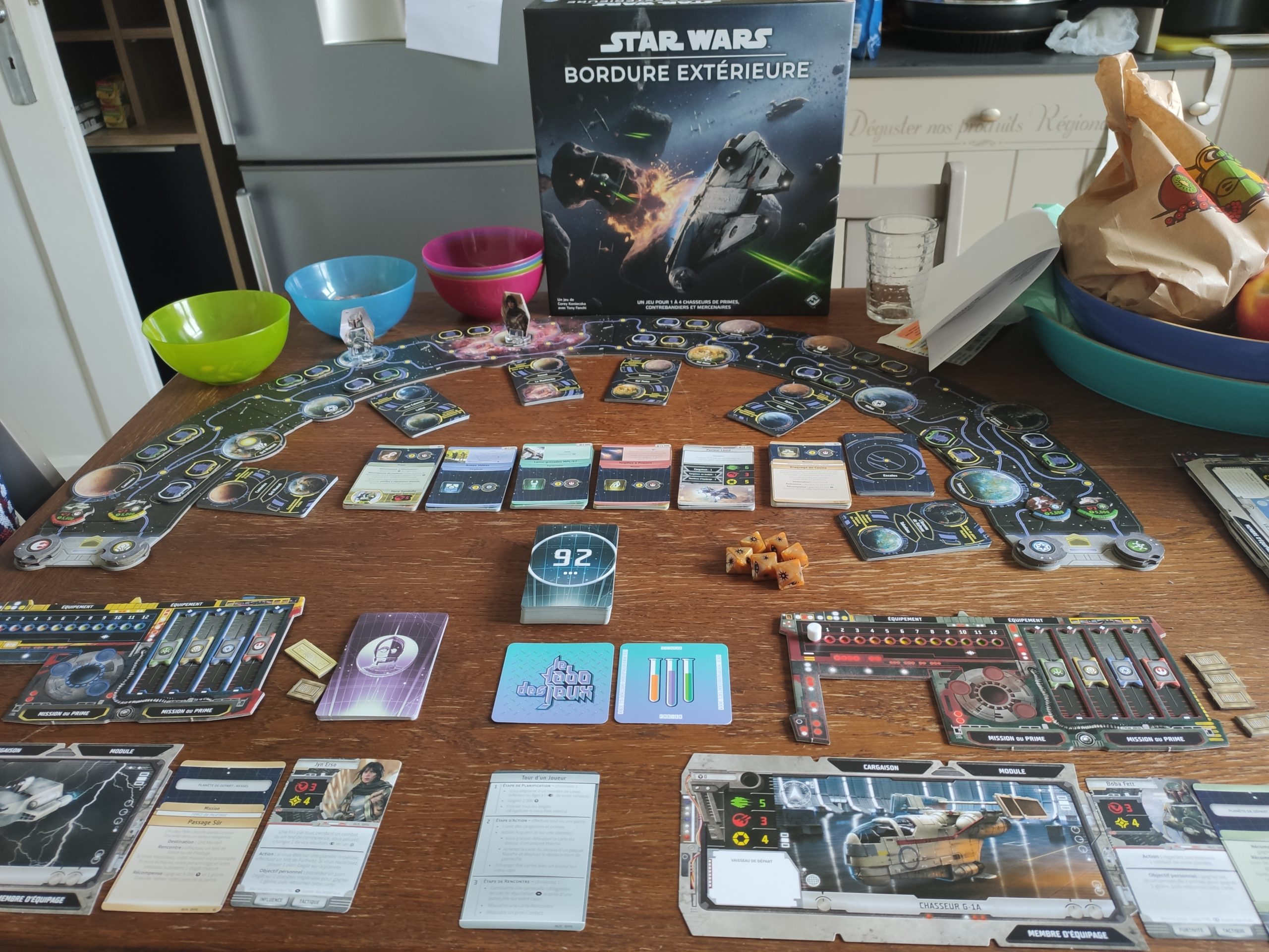 En tant que fan Star Wars j’ai adoré m’immerger dans l’univers, incarner un contrebandier, un chasseur de prime. Piloter mon vaisseau, décider de ces équipements, des missions à réaliser, des factions à trahir, des alliances à nouer etc… Ce côté fan service est très bien rendu. Si vous êtes fans, il y a peu de chances que vous soyez déçus. L’univers est très bien respecté, la licence est chez FFG depuis longtemps et ils savent qu’ils ne peuvent pas faire n’importe quoi avec (normalement…).