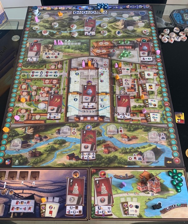 Gameplay : Le palais d’été apporte plusieurs nouvelles mécaniques, par le plateau additionnel, qui se répercutent sur l’ensemble du jeu par la suite.
