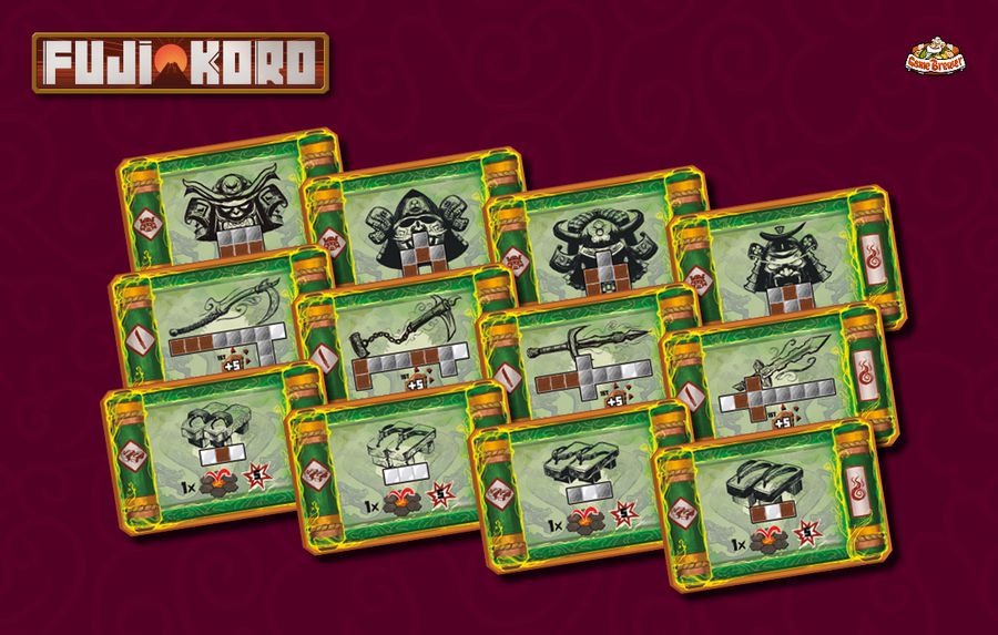 Chaque joueur prend possession de son samouraï et du plateau individuel qui va avec. Dans ce jeu mêlant exploration, course à l’objectif gestion de ressources, crafting et affrontements, les joueurs devront se déplacer sur la carte principale représentant le mont Fuji. La carte se révélera au fur et à mesure de l’exploration des joueurs, révélant des trésors, des tuiles envahies par la lave, des dragons ou des ressources.