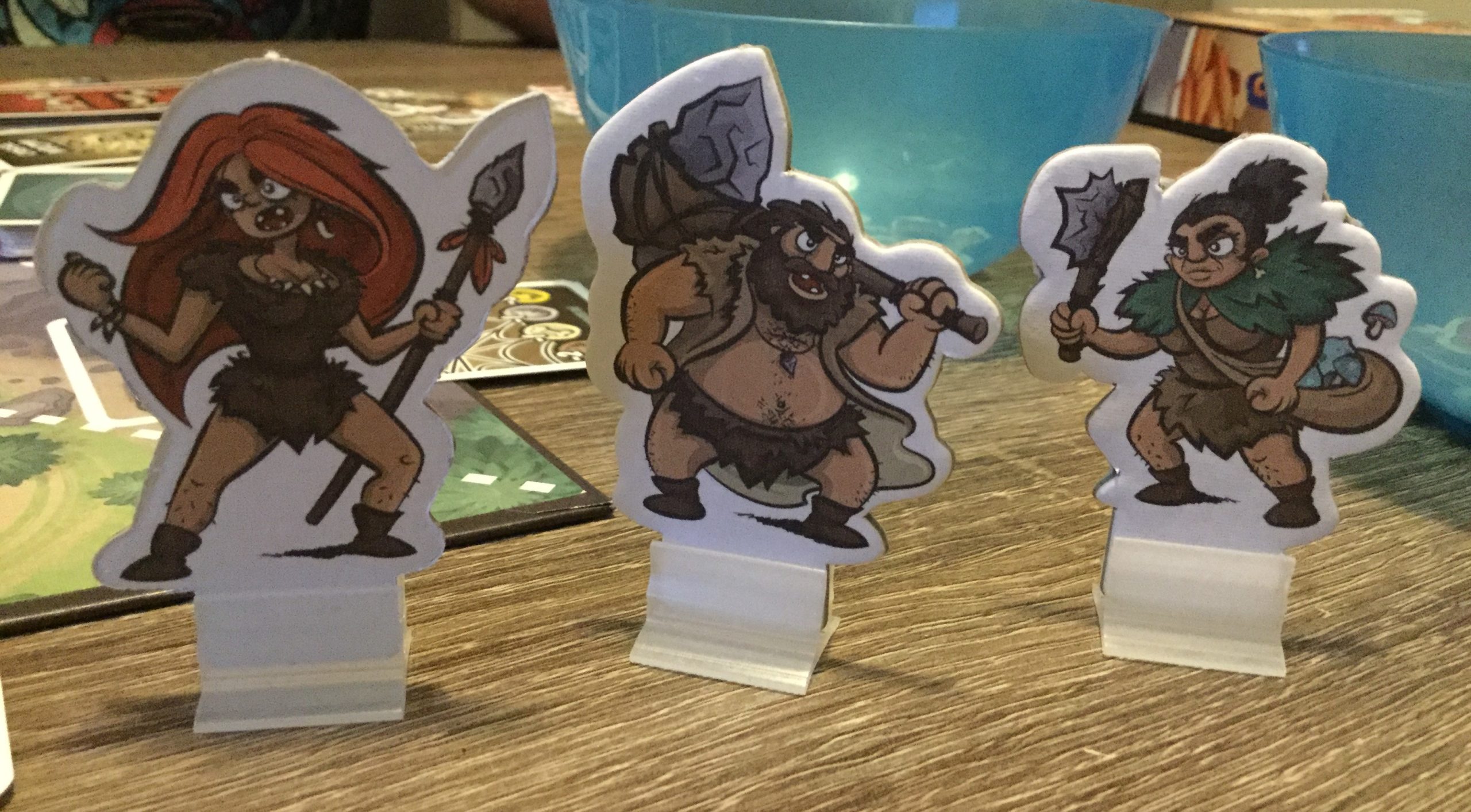 Lors du premier contact avec le jeu on est tout de suite attiré par les illustrations. Ce style cartoonesque est très bien réalisé et promet un univers riche et fun. On oublie le réalisme et le projet hyper documenté et fidèle jusqu’au moindre détail dans cette adaptation du monde préhistorique. Ici on est plutôt dans le côté délire et pas prise de tête. On peut faire un parallèle avec le très bon Vikings Gone Wild qui utilise la thématique des Vikings dans un côté cartoon saupoudré de grand n’importe quoi. Et dans les 2 cas le résultat est très bon! On adhère à ce choix de ne pas se prendre au sérieux pour en faire un univers attachant, humoristique et très bien réalisé!