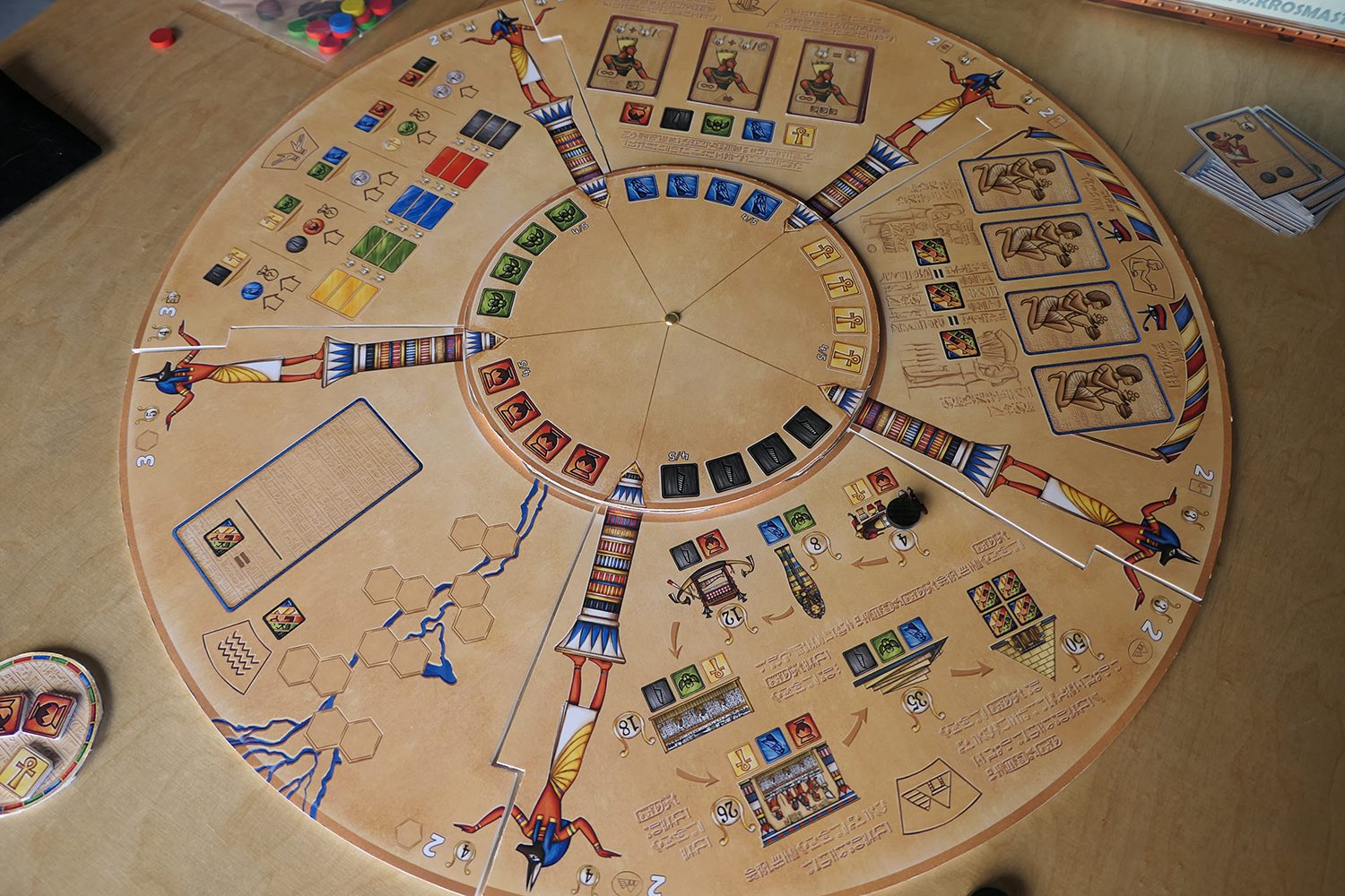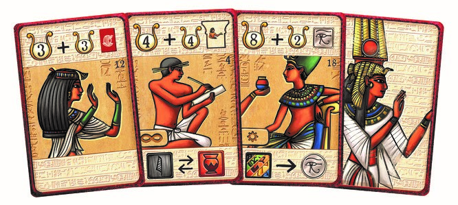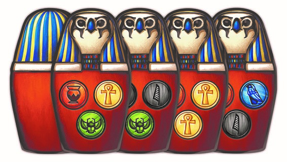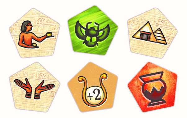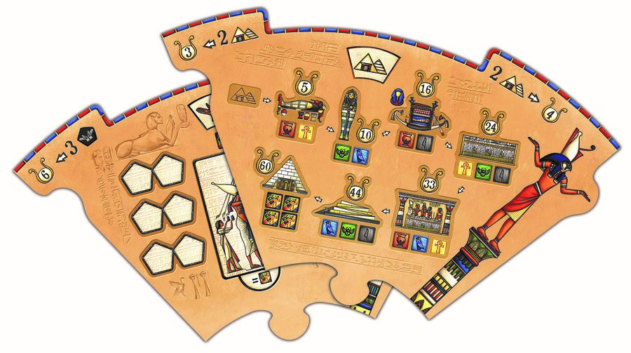 Un jeton bonus, en mode course de dromadaires sur sable chaud, permet aussi de gagner 7 PP à la fin du jeu, mais pour cela il faudra être le premier à avoir deux nobles et d’être sur la 3ème étape de construction de votre chambre funéraire.