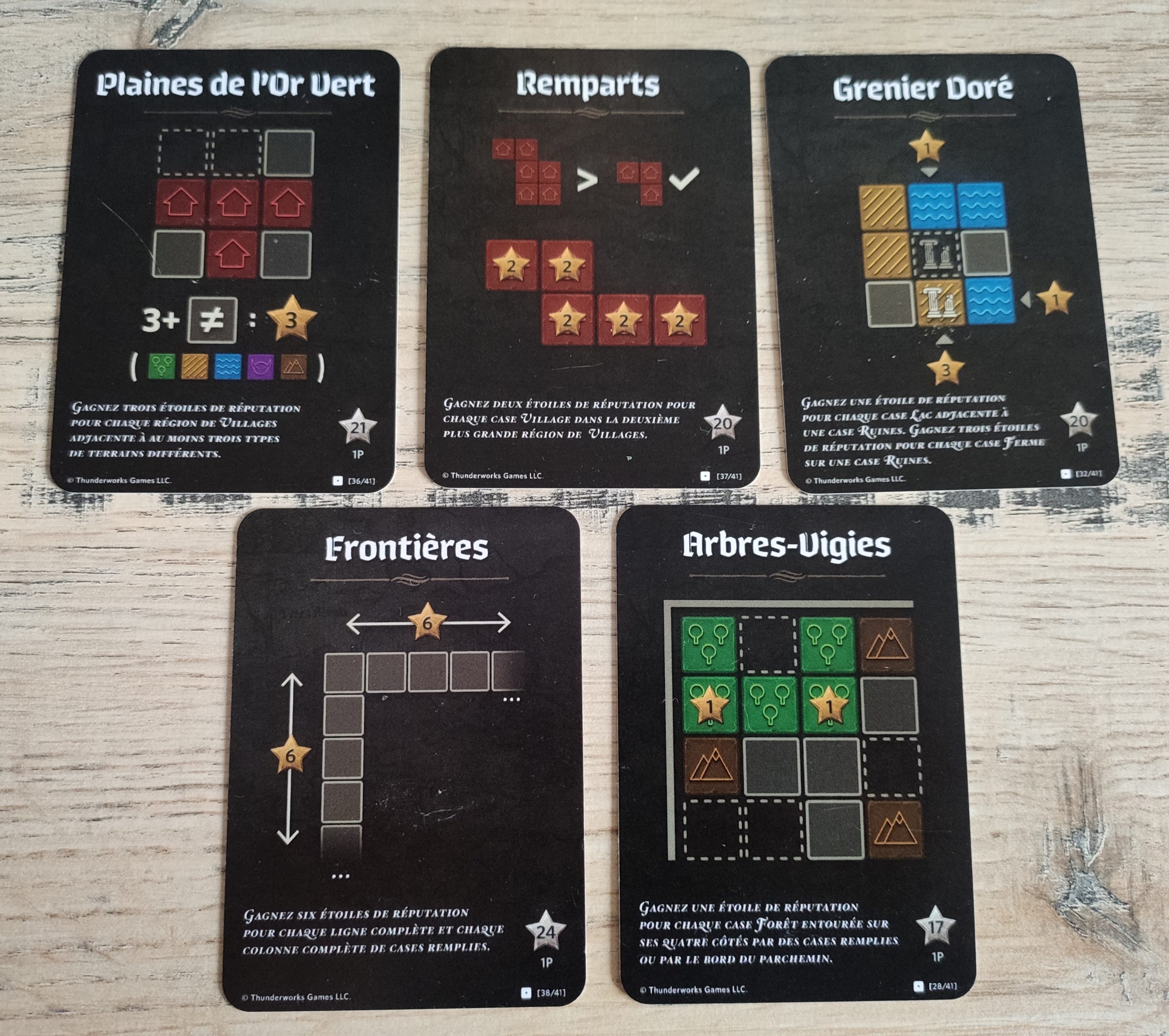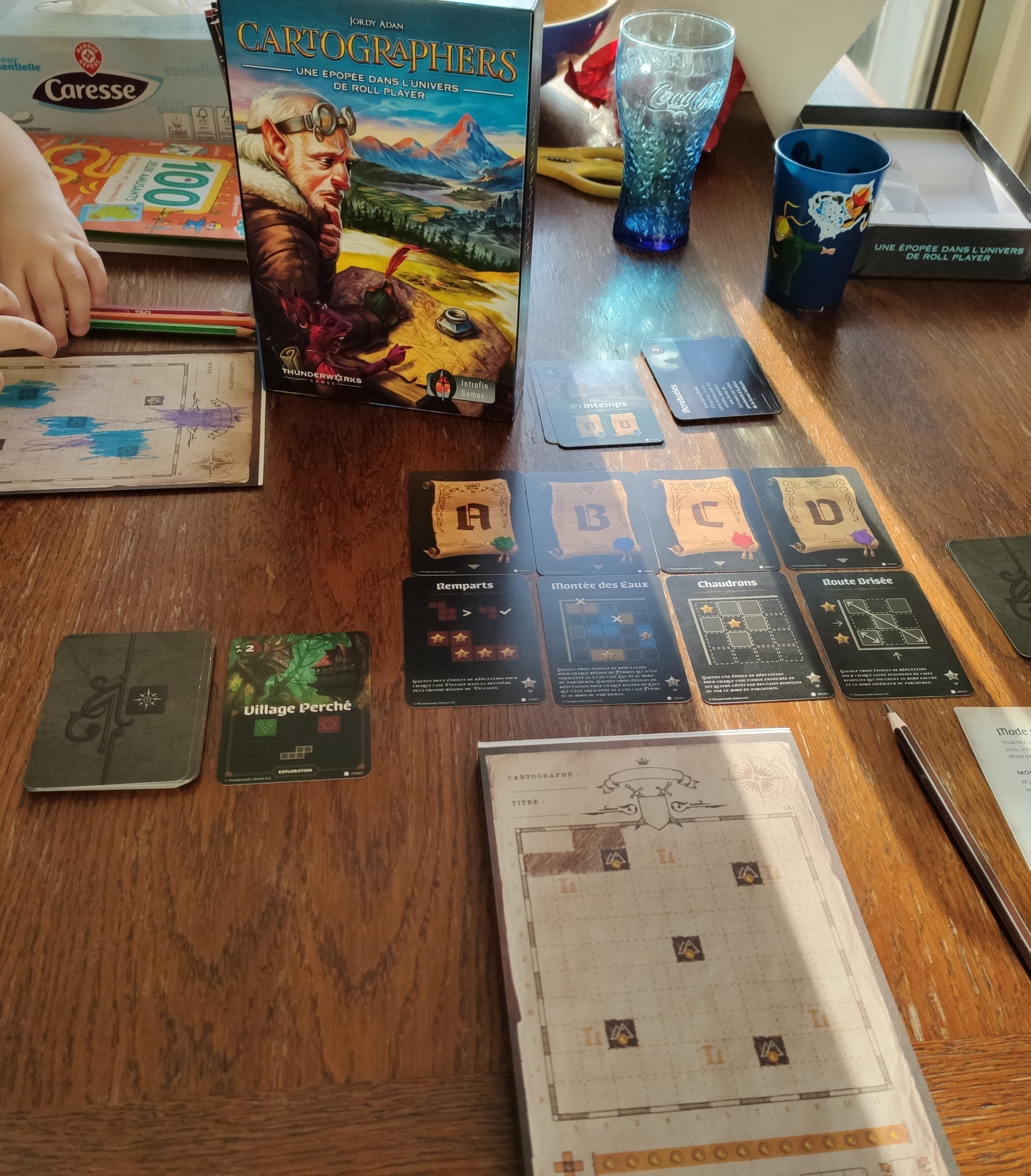 Bref, un bon côté stratégique sans se casser les neurones non plus, une interaction coup de p*** bien sentie avec les embuscades et qui fait relever la tête des joueurs de leur parchemin pour venir pourrir celui du voisin, un décompte de points très malin avec des objectifs qui comptent 2 fois dans la partie, … C’est un gros oui pour ce Cartographers qui ressort très facilement. Il s’explique en 5 minutes et se joue sur peu d’espace donc facilement transportable.