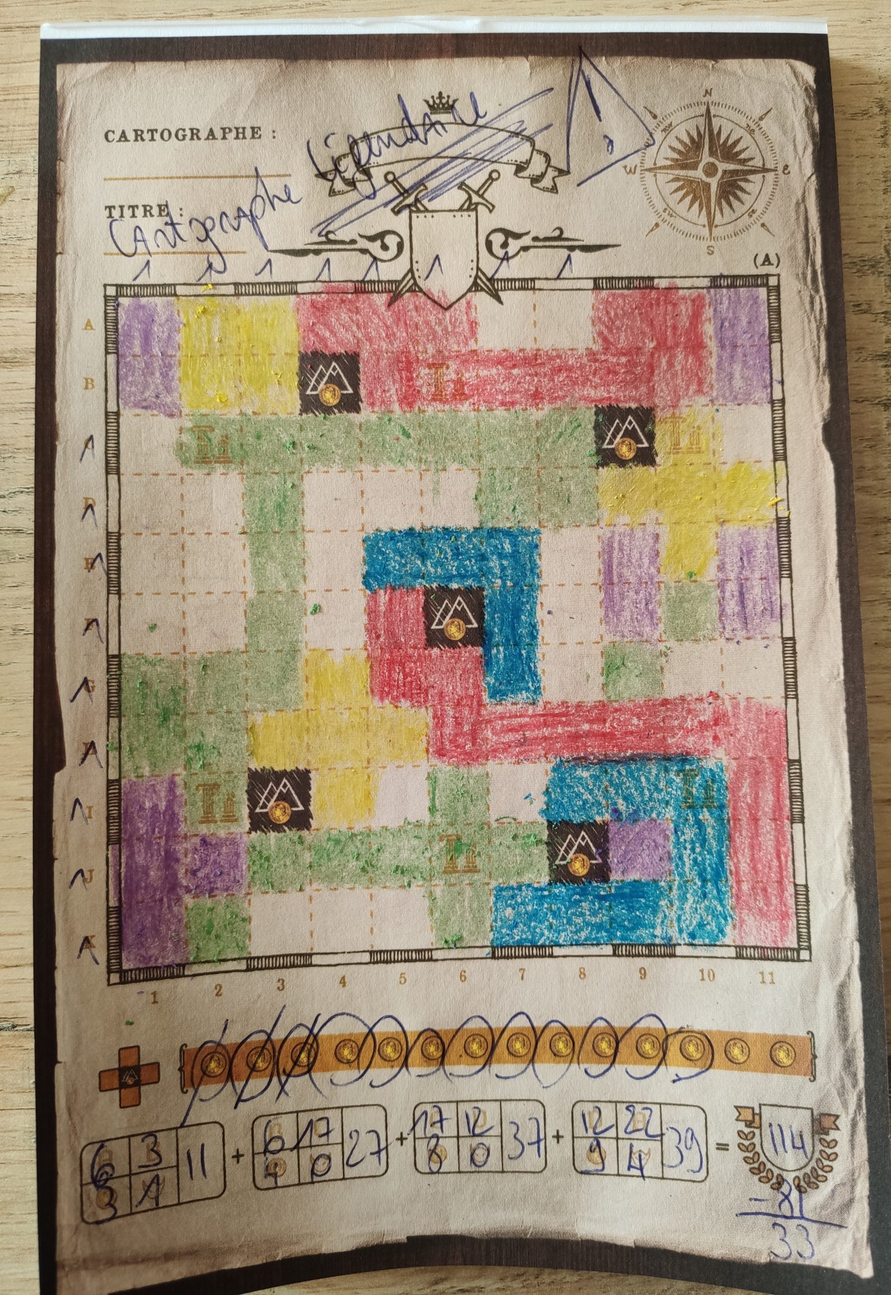 Chaque joueur va dessiner sur son parchemin les formes et types de terrain qui apparaîtront sur les cartes exploration que l’on dévoile au fur et à mesure.